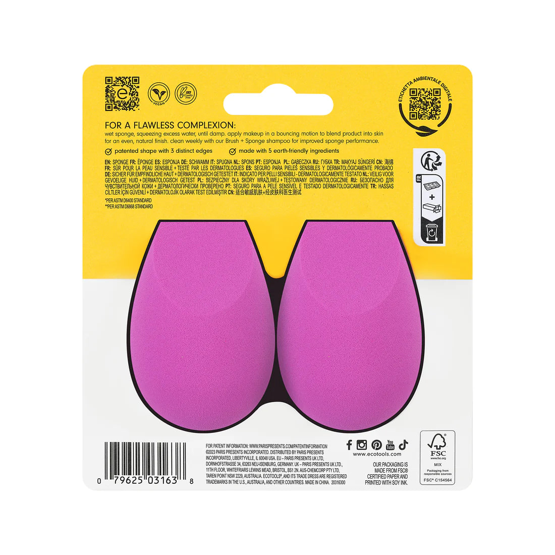 Mantenga su esponja fresca limpiándola una vez a la semana. Después de 30 días de uso, reemplace y convierta en abono su esponja vieja para beneficiar tanto a su piel como al medio ambiente. Como ocurre con todos los productos EcoTools, BioBlender es 100% vegano y libre de crueldad animal.
