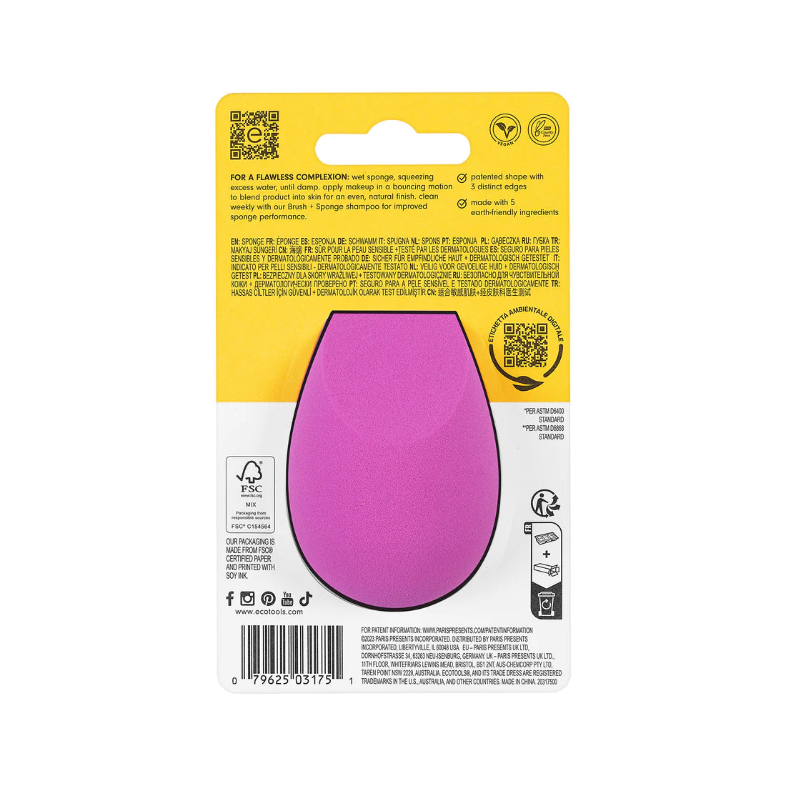 Después de 30 días de uso, reemplace y convierta en abono su esponja vieja para beneficiar tanto a su piel como al medio ambiente. Como ocurre con todos los productos EcoTools, BioBlender es 100% vegano y libre de crueldad animal.