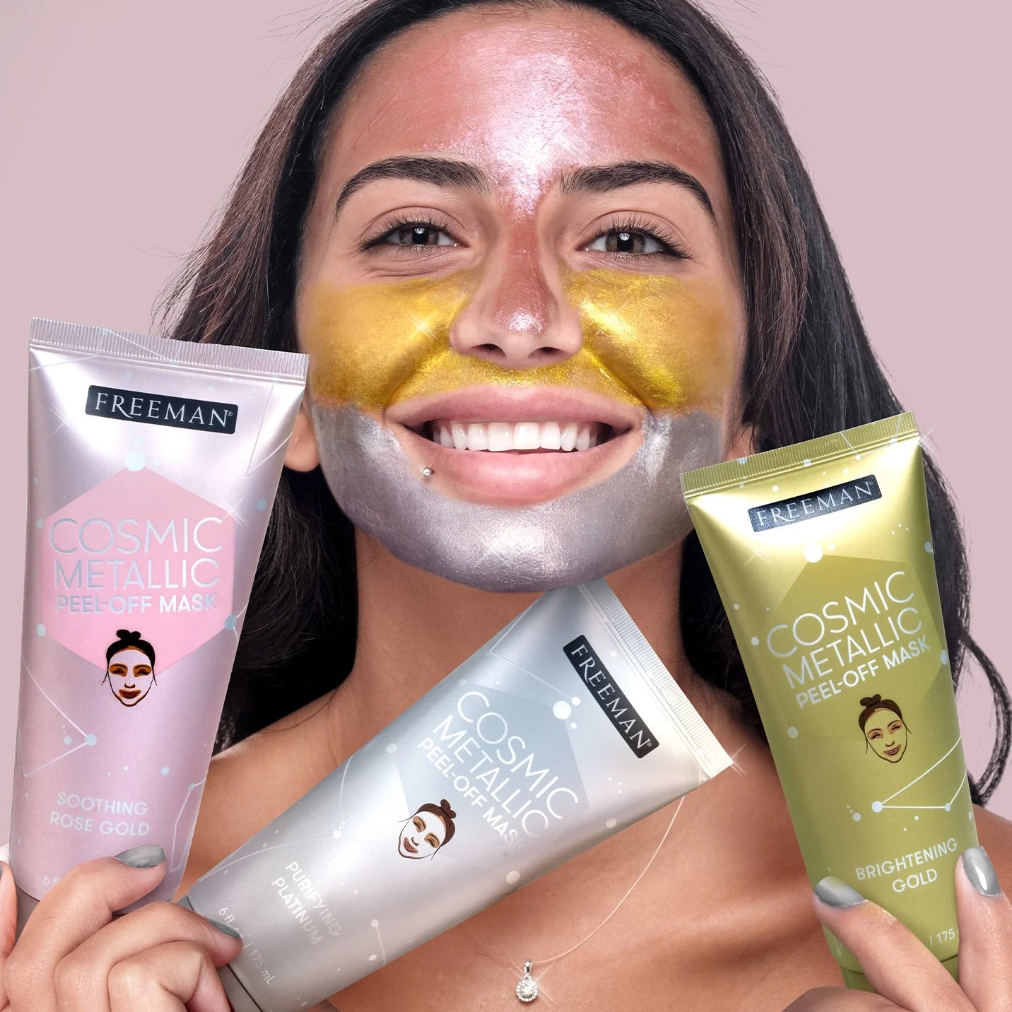 ¡Ilumina y renueva tu cutis con la mascarilla peel-off dorada con brillo metálico Freeman Cosmic!