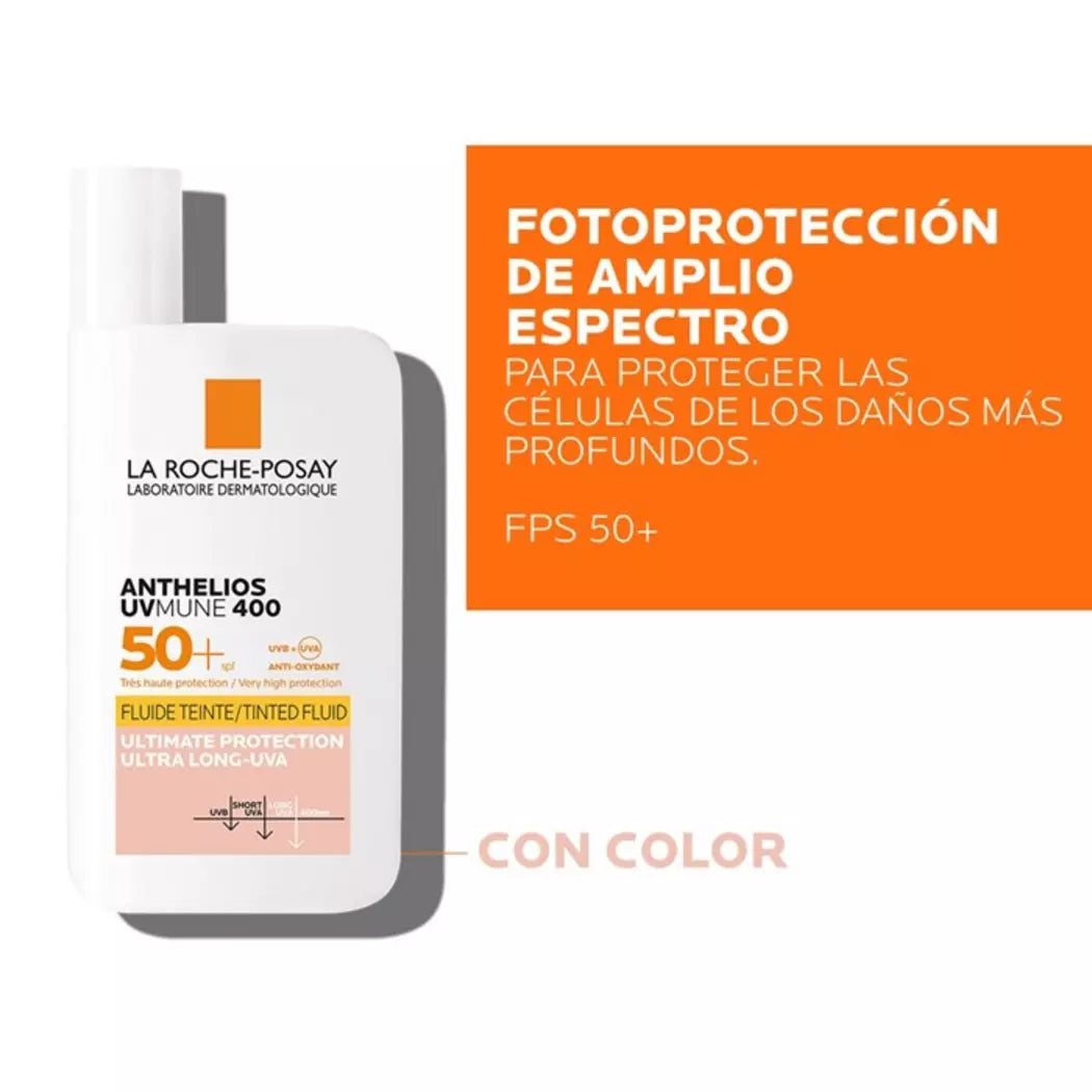 LA ROCHE POSAY Anthelios UVMUNE 400 Fluido Con Color FPS50+ es más que un protector solar: es tu aliado diario para una piel perfecta y protegida.