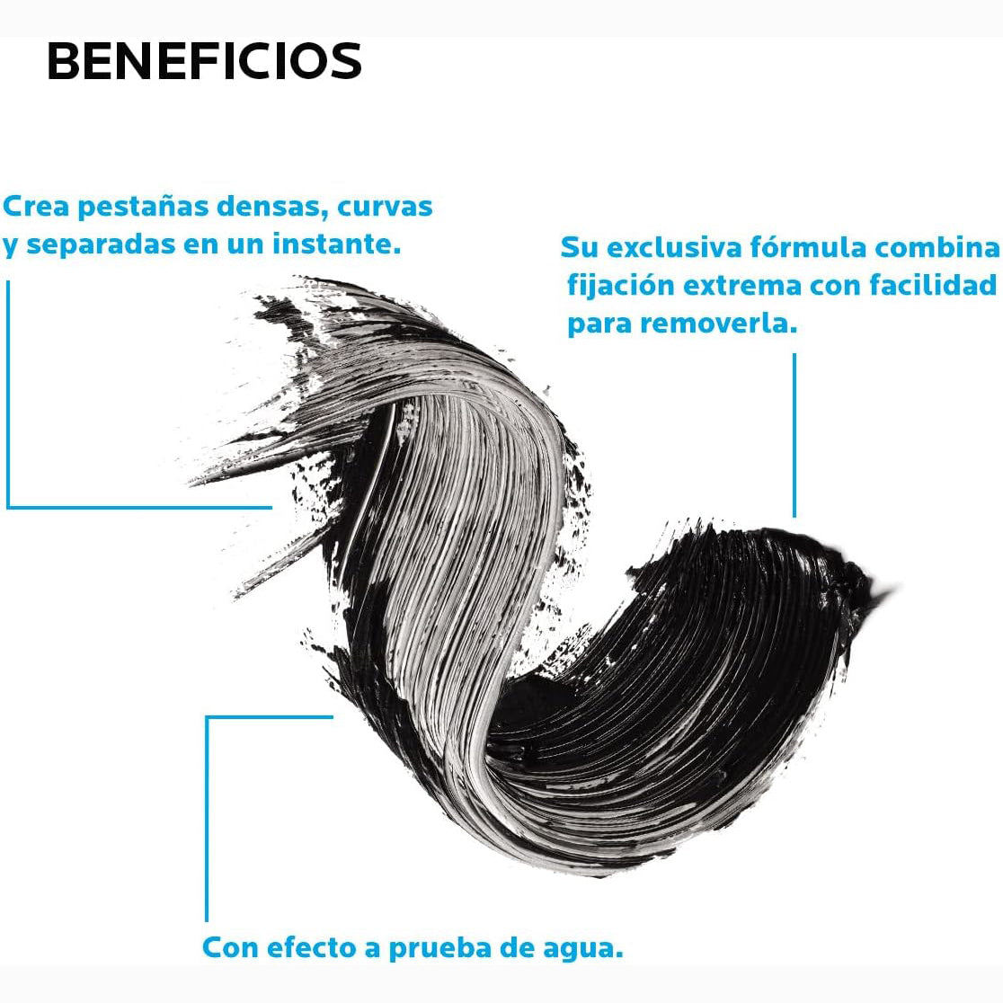 Textura: Su cepillo de alto rendimiento garantiza una definición y un volumen intensos. Desmaquillado fácil.