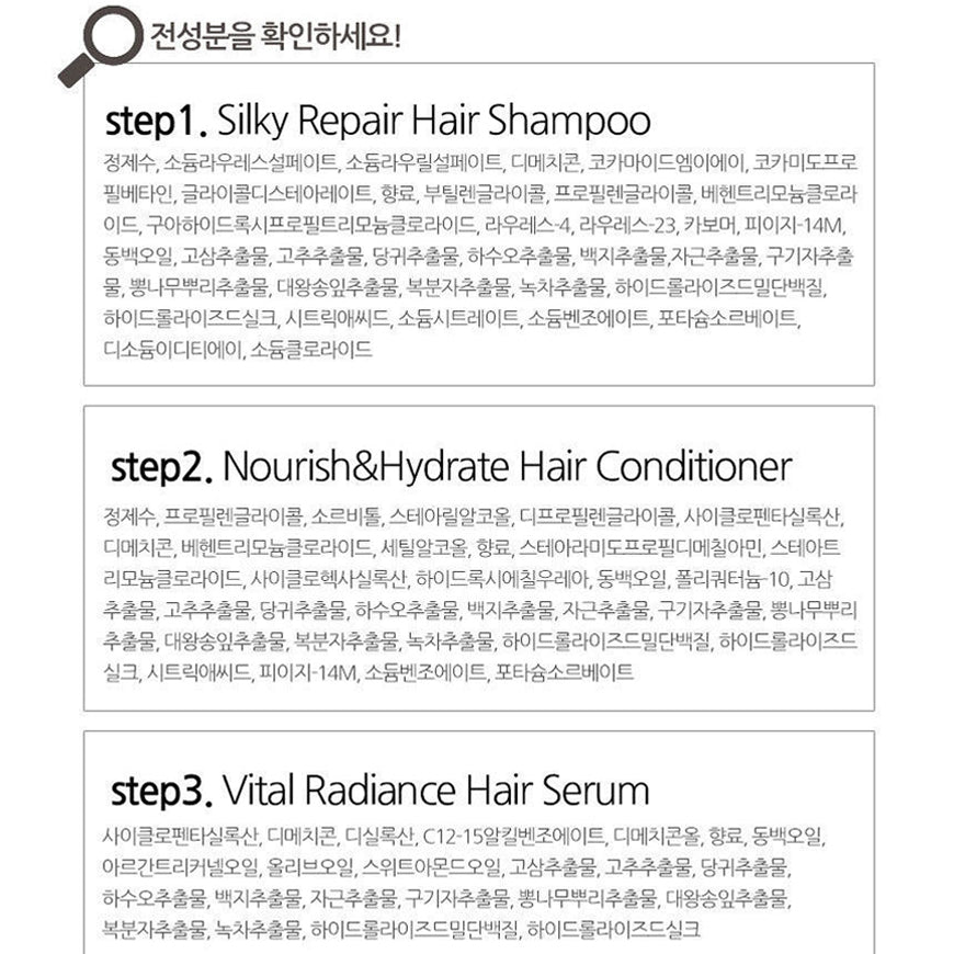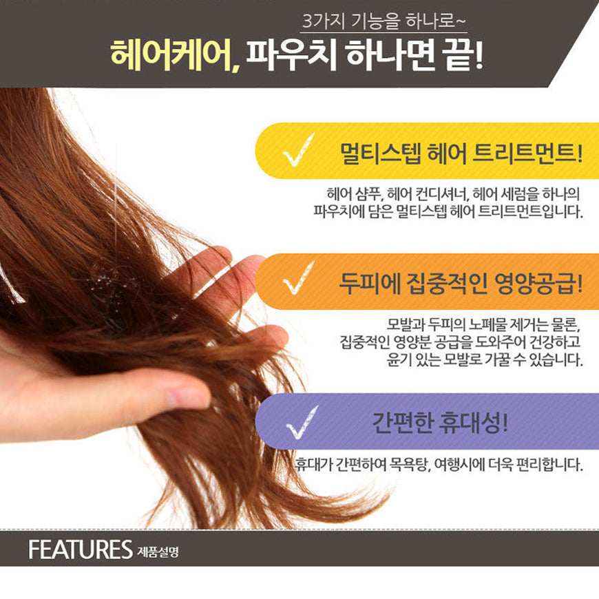 Esta bolsa de tratamiento capilar de tres pasos consta de un champú para el cabello, un acondicionador para el cabello y un suero para el cabello. Ayuda a limpiar, acondicionar y nutrir el cabello y el cuero cabelludo, promoviendo mechones sanos y brillantes.