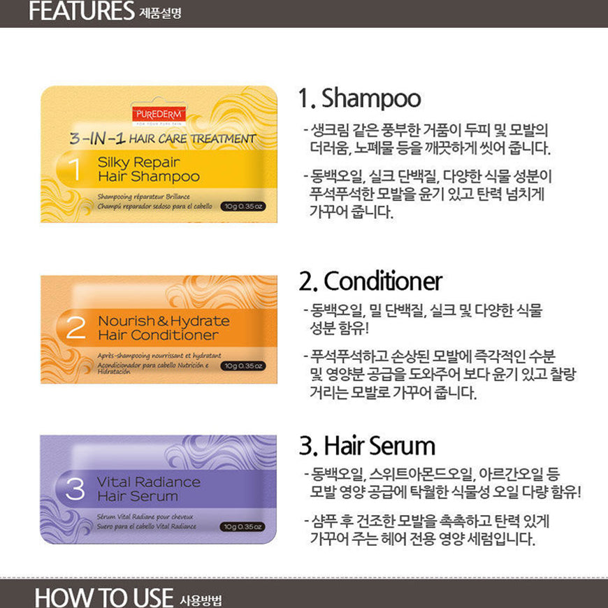 PUREDERM 3-in-1 Hair Care Treatment, 3 en 1 Tratamiento para el cuidado del Cabello.