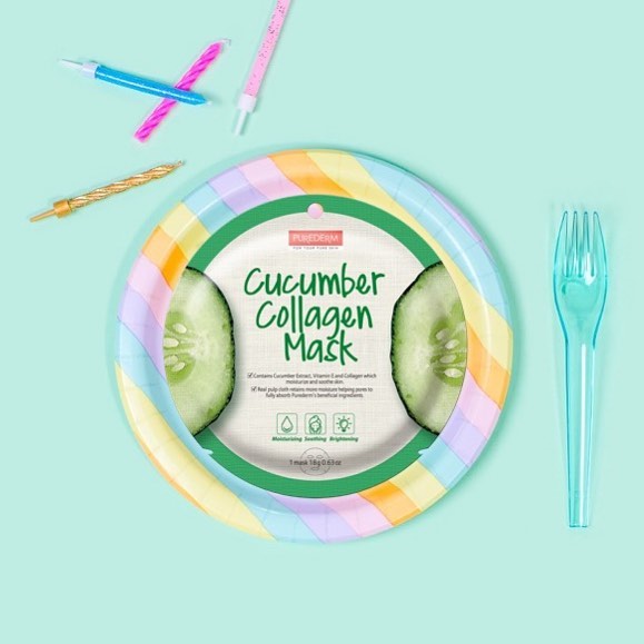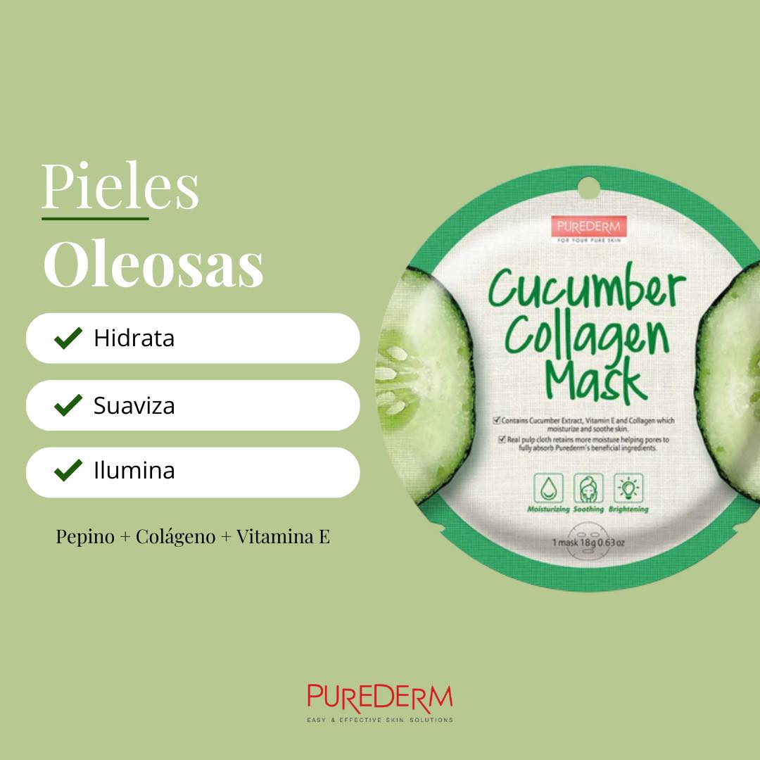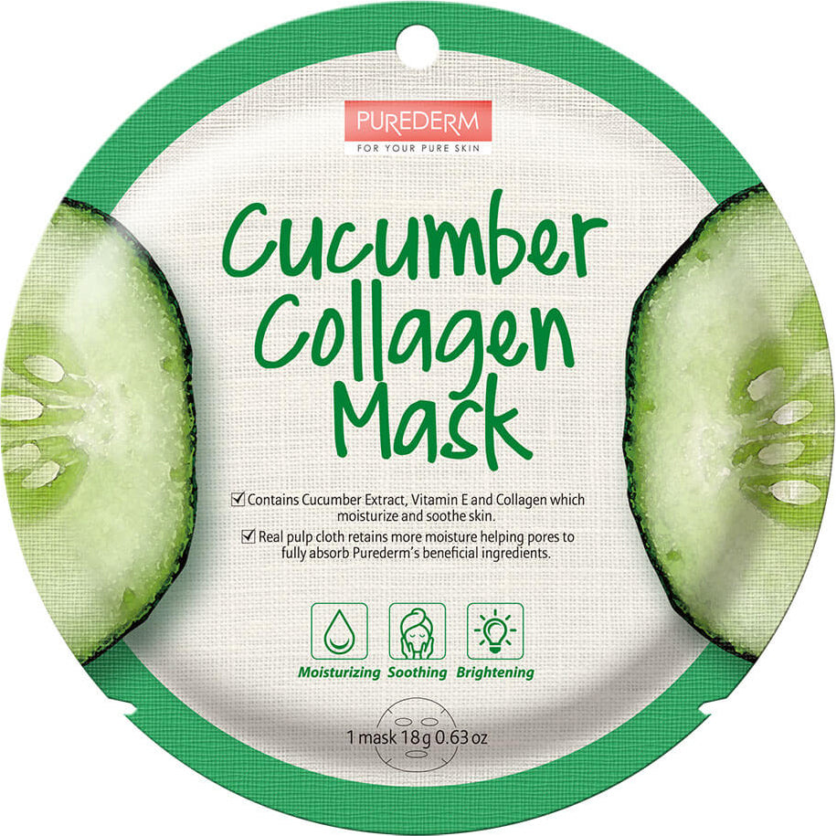 PUREDERM Cucumber Collagen Mask, Mascarilla con Extracto de Pepino, 18gr.