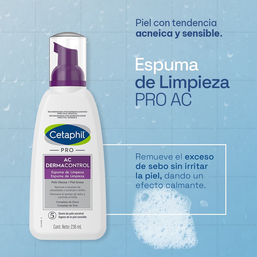GALDERMA Cetaphil PRO AC Dermacontrol Espuma de Limpieza 236ml, es la elección perfecta para quienes buscan controlar el acné sin comprometer la salud de su piel. Con ingredientes que realmente marcan la diferencia, esta espuma limpiadora es ideal para lograr una piel limpia, fresca y equilibrada. ¡Incorpora este limpiador a tu rutina diaria y descubre una piel más clara y saludable!