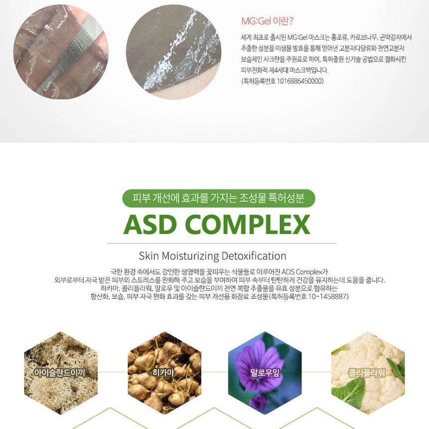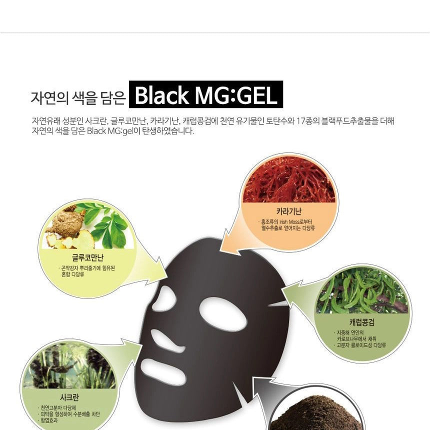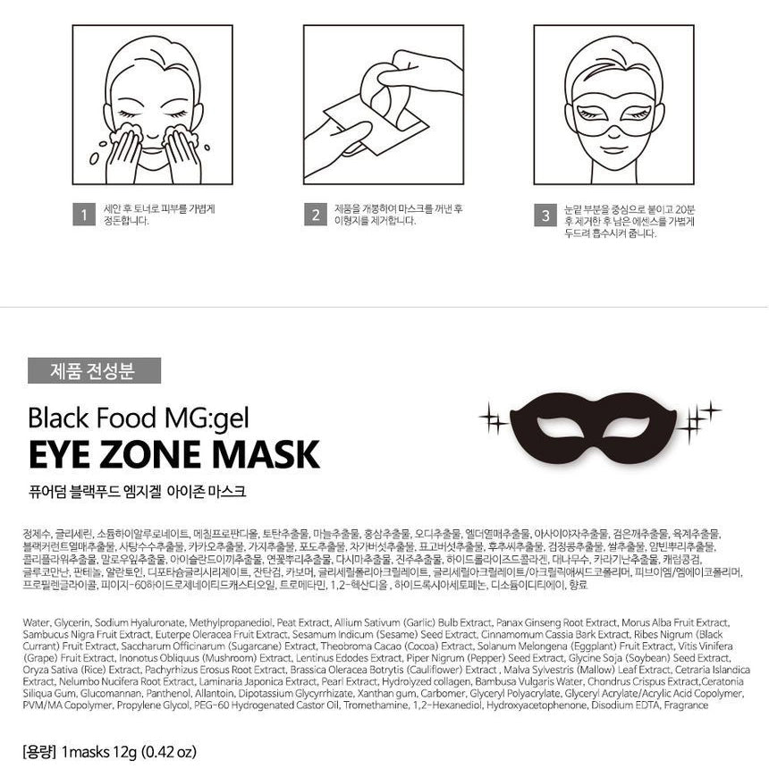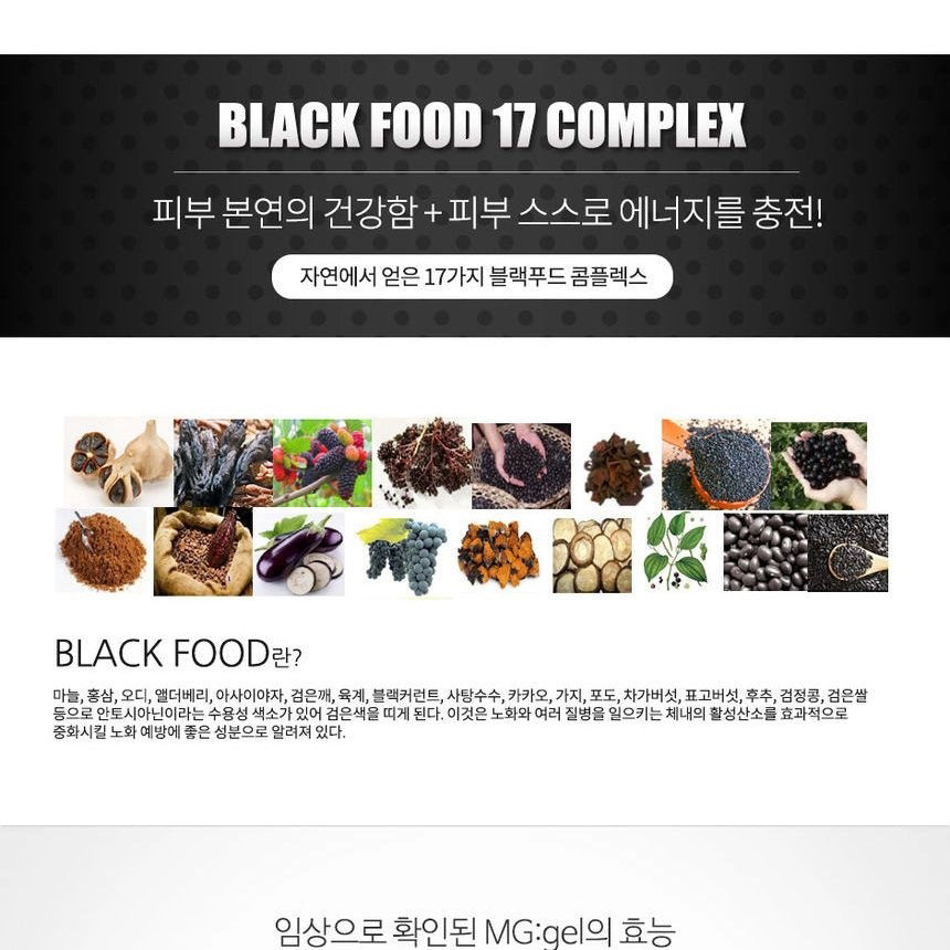 Black Food Complex, contiene 17 tipos de ingredientes de alimentos negros llenos de energía y nutrientes saludables, proporciona hidratación y nutrición intensivas para la piel alrededor de los ojos, haciendo que la piel sea más firme y elástica. Además, el extracto de hoja de Malva Sylvestris, el agua de bambú, la alantoína y el pantenol en MG:gel Eye Zone Mask calman y protegen la piel alrededor de los ojos de irritantes externos.