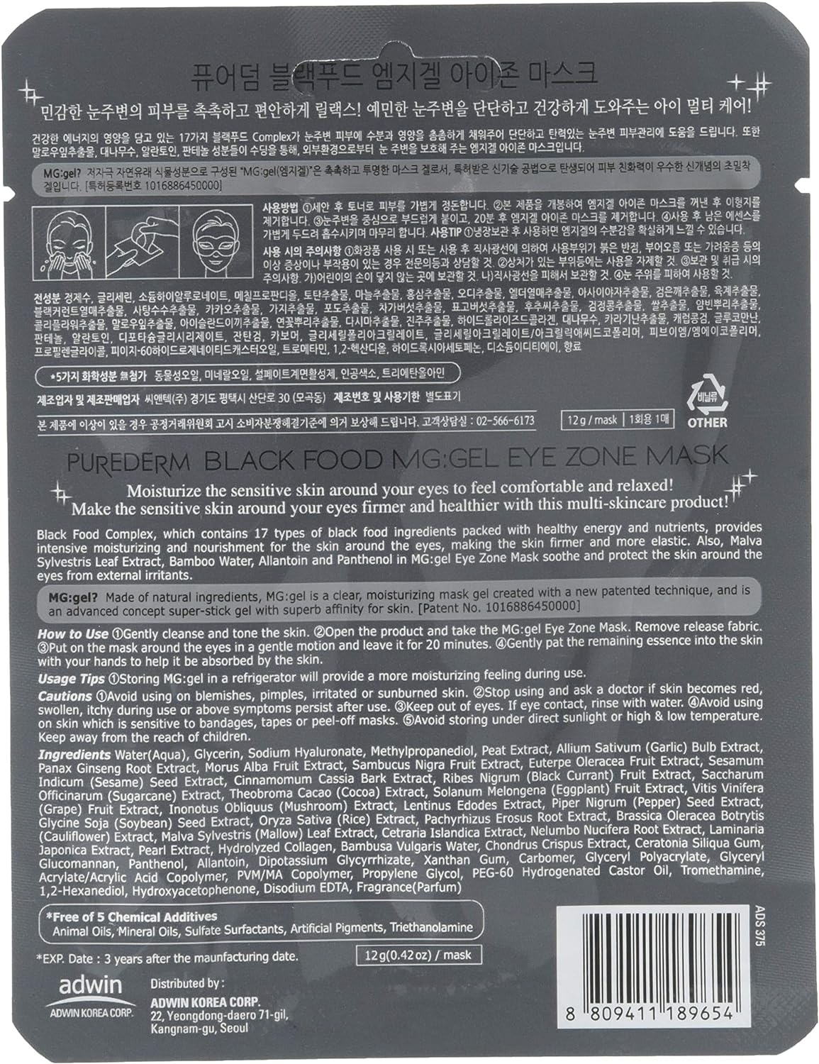 PUREDERM Black Food MG:GEL Eye Zone Mask, Máscara de Gel para Zona de Ojos, 12gr.
