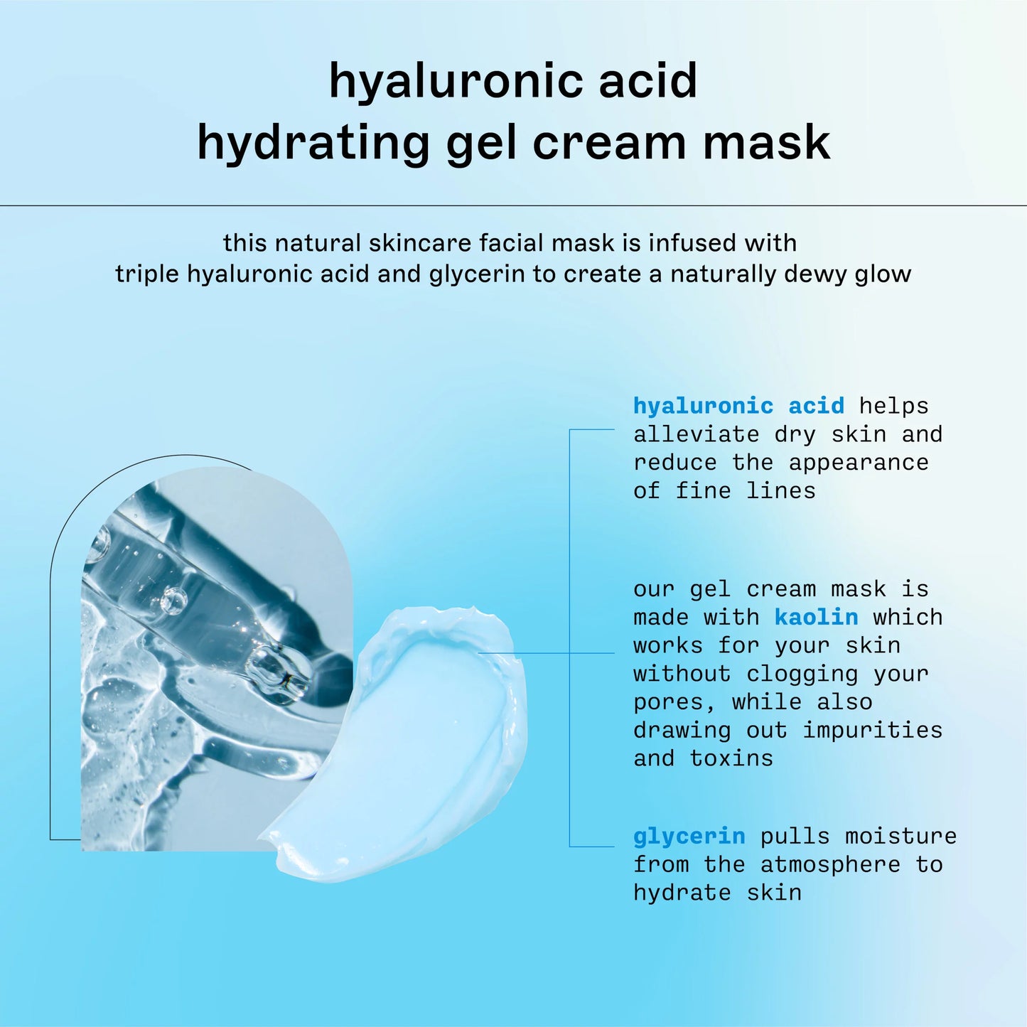 • Nuestra mascarilla en gel hidratante Freeman Basics contiene ácido hialurónico