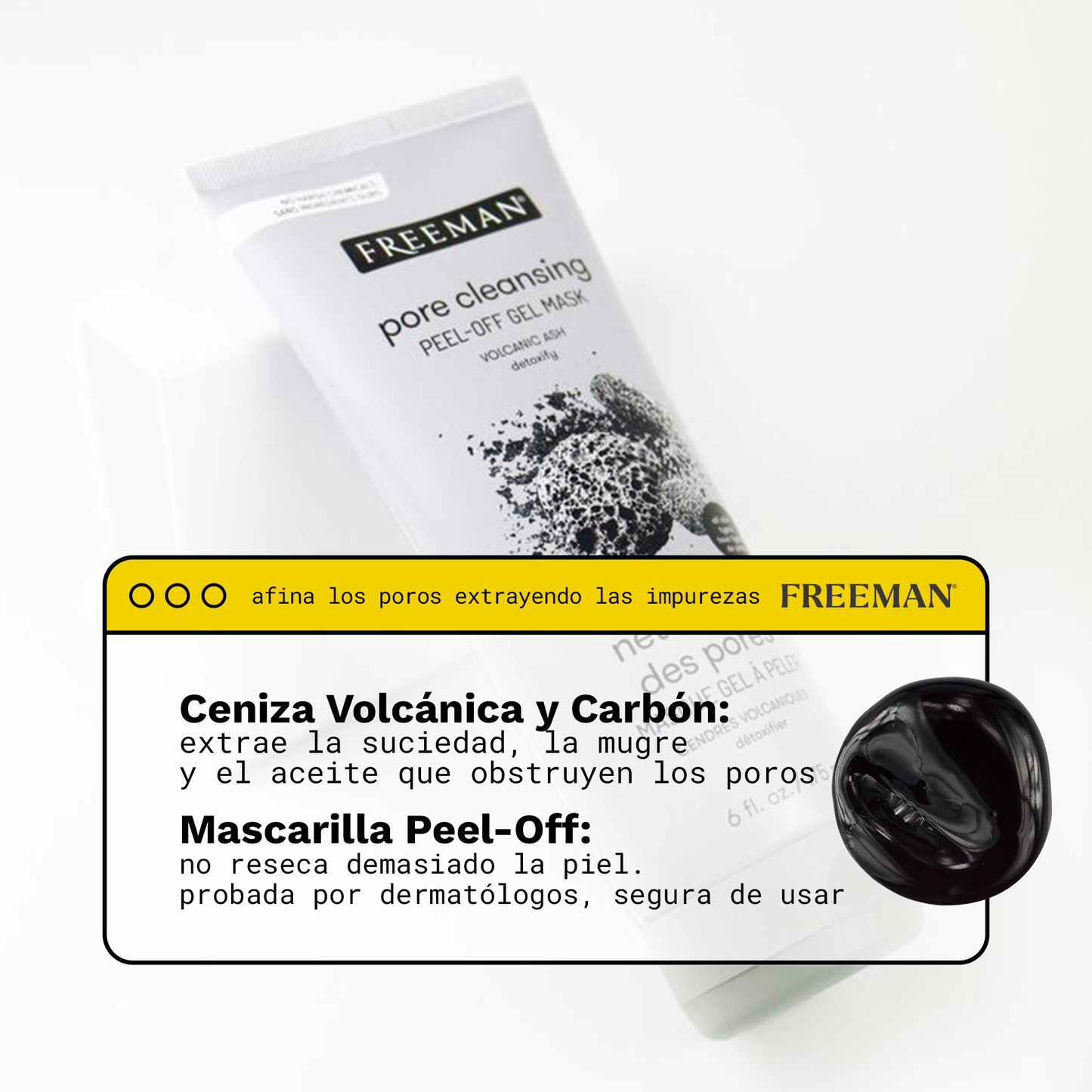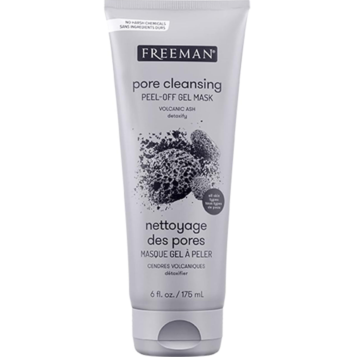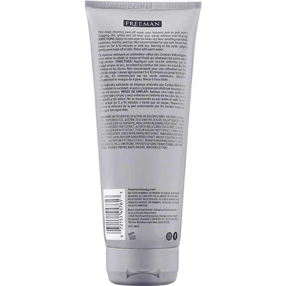 FREEMAN Pore Clearing Volcanic Ash Peel Off Gel Mask, Mascarilla en gel exfoliante de ceniza volcánica que limpia los poros, 175ml.