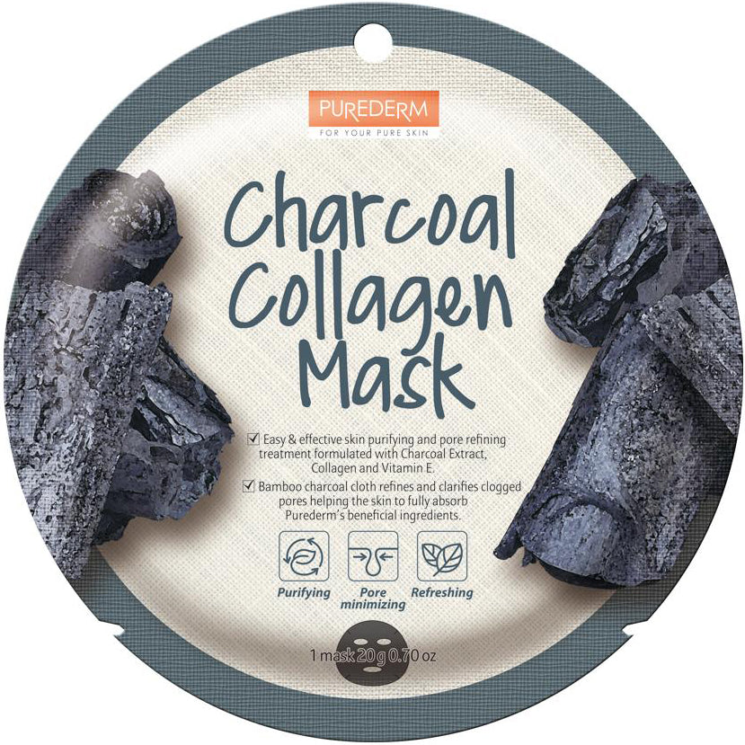 PUREDERM Charcoal Colagen Mask, Mascarilla Carbón Activado + Colágeno, 18gr.