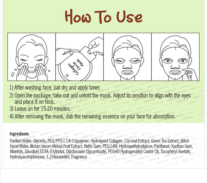 5. Manténgase a temperatura ambiente. Sólo para uso externo. No deje al alcance de los niños. Para prevenir que la mascarilla se seque, usarla inmediatamente después de abrir la envoltura.