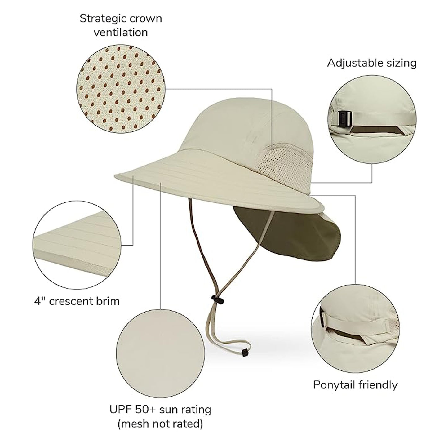 ¡Un borde completo y una vista completa! La protección solar es excelente, pero a veces puede bloquear la visión periférica. Hemos diseñado el Sport Hat para mantener su perspectiva abierta de tres maneras: