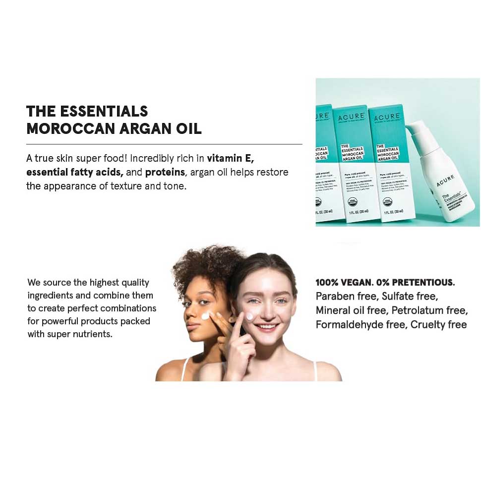 ACURE The Essentials Moroccan Argan Oil es oro líquido: puro, natural y cargado de nutrientes que hidratan, reparan y devuelven vitalidad.