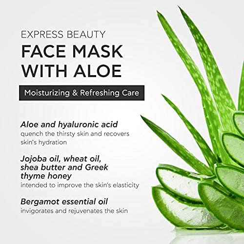 EXPRESS BEAUTY mascarilla facial hidratante y refrescante con aloe. Fórmula enriquecida con un 97% de ingredientes de origen natural.