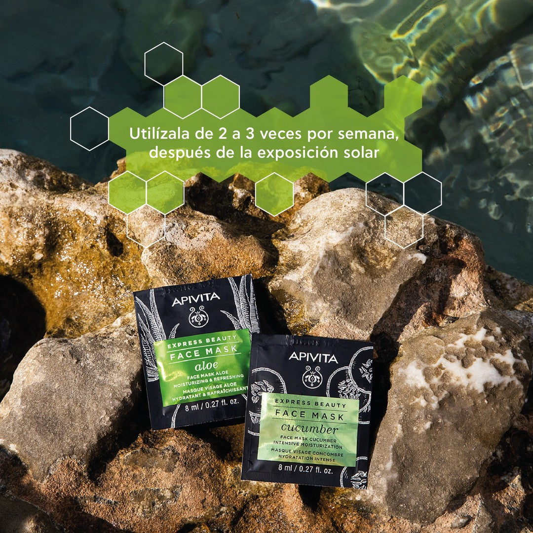 APIVITA Mascarilla Facial con Aloe. Contenido de una caja con 6 tiras de 2 Sachets de 8 ml c/u.