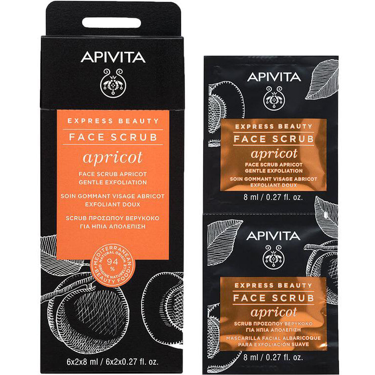 APIVITA Mascarilla Facial con Albaricoque. Contenido de una caja con 6 tiras de 2 Sachets de 8 ml c/u.