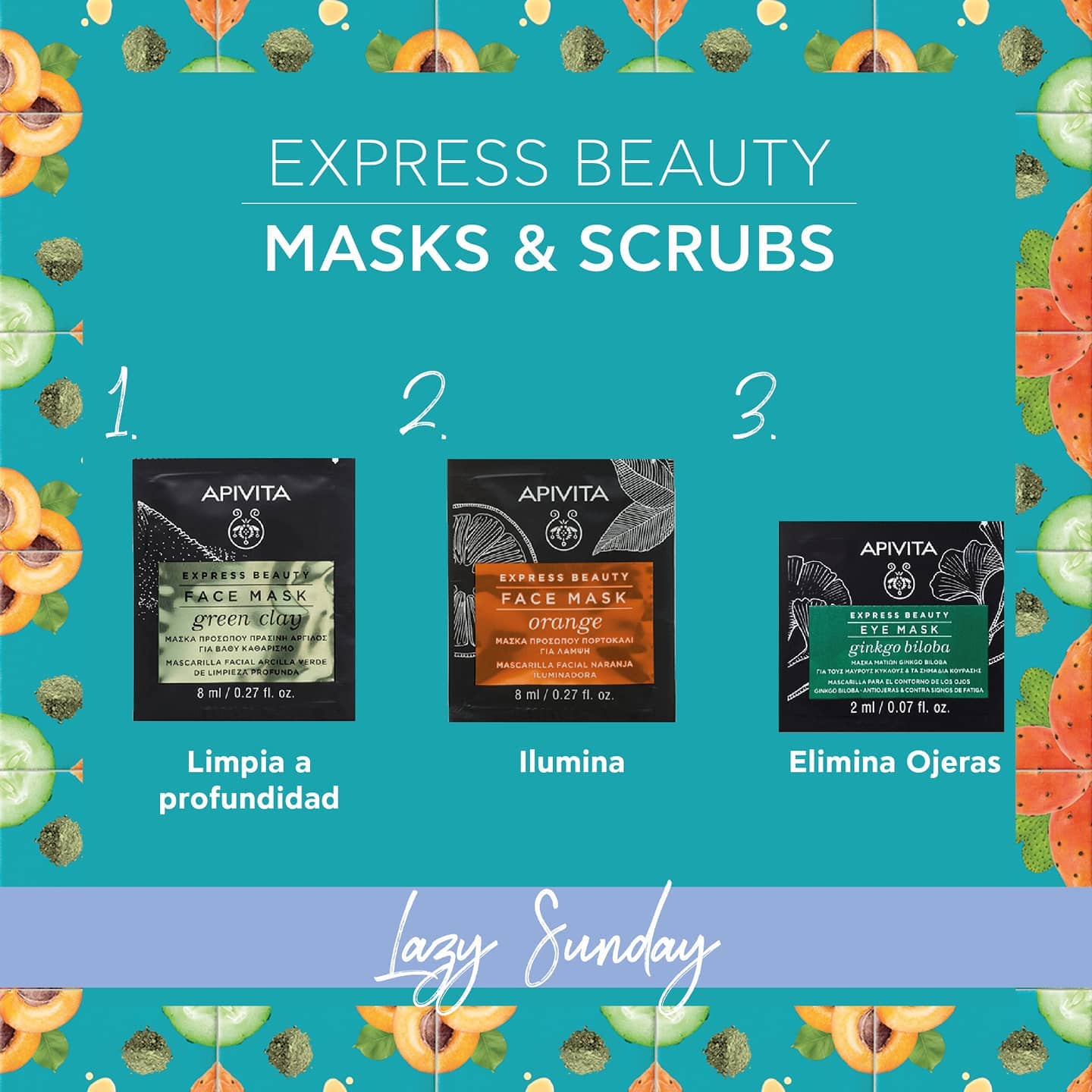 APIVITA Mascarilla Facial de Arcilla Verde. Contenido de una caja con 6 tiras de 2 Sachets de 8 ml c/u.
