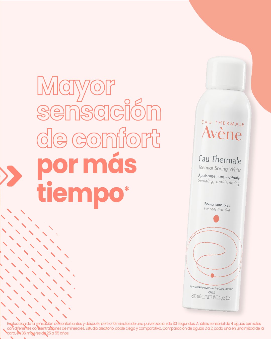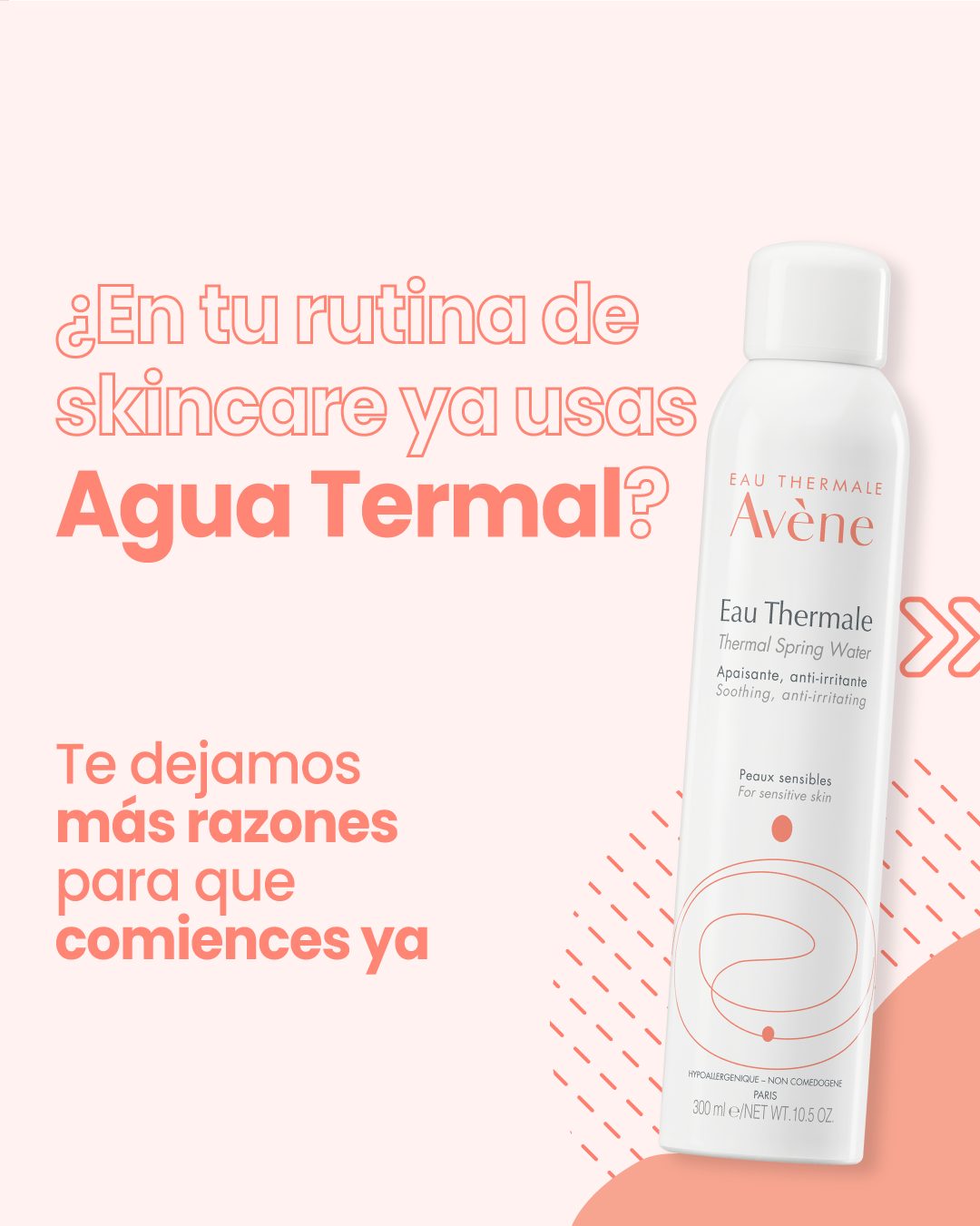 Con un solo clic, el Spray de Agua Termal de Avène alivia instantáneamente las pieles sensibles, irritadas o propensas a las alergias. El Agua Termal de Avène, enriquecida con más de medio siglo de experiencia, está repleta de minerales y oligoelementos que garantizan un equilibrio mineral óptimo y una microflora específica, lo que le confiere su carácter único y excepcional que ayuda a calmar la piel sin resecarla, y la convierte en un elemento central de cualquier rutina de belleza.