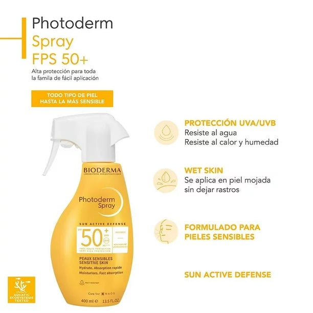 BIODERMA Protector Solar Para Toda la Familia Photoderm Spray FPS 50, 400ml.