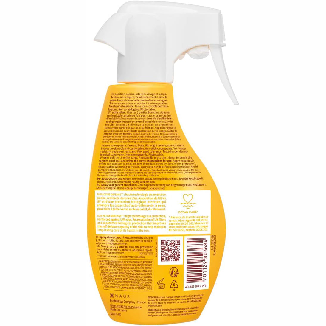 SUN ACTIVE DEFENSE: Alta tecnología en protección solar reforzada contra los rayos UVA. Una combinación de filtros y una protección biológica patentada para estimular las defensas naturales de la piel.