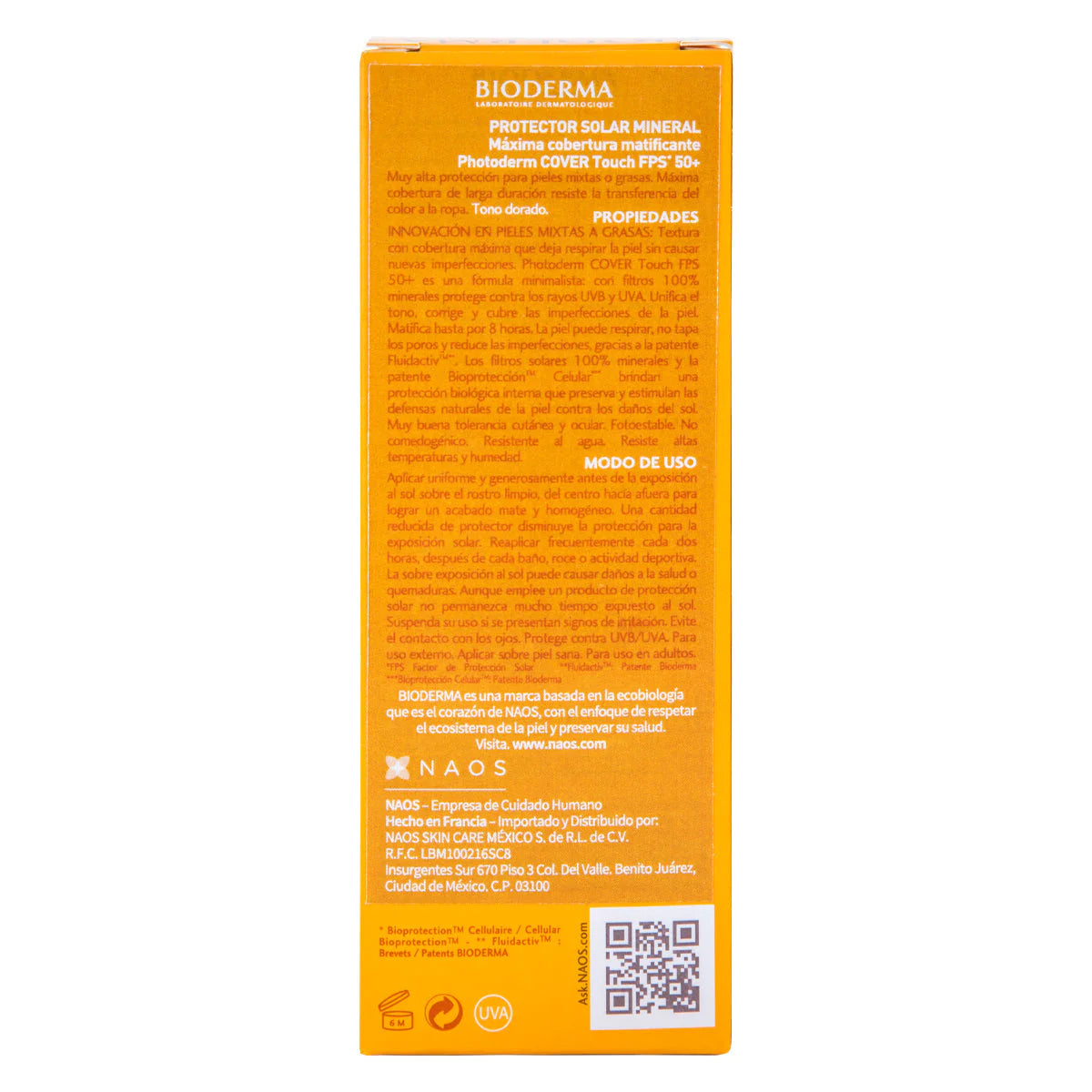 BIODERMA Protector Solar Facial Photoderm COVER Touch MINERAL FPS 50, Color Dorado, 40ml.
