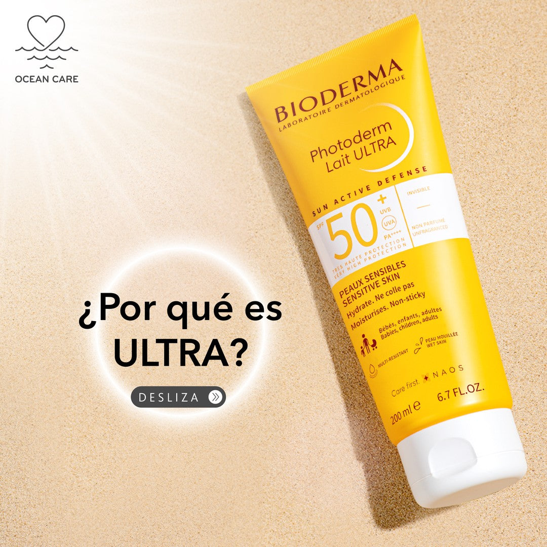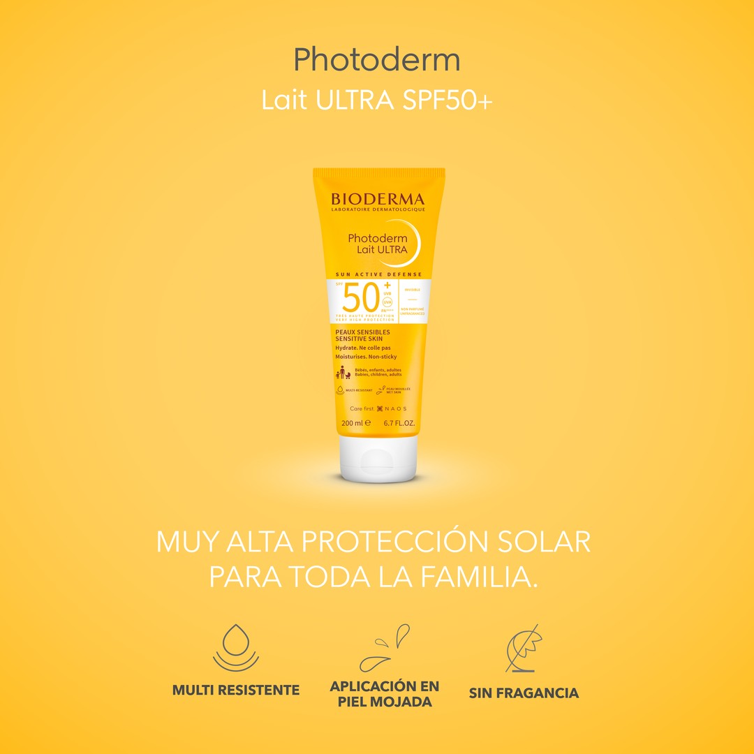 Protege a tu familia del sol con la confianza de Bioderma Photoderm Lait ULTRA Famille SPF 50+. ¡Disfruten del sol juntos sin preocupaciones!
