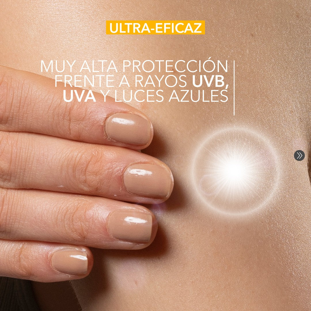 Protección Avanzada: Con un alto factor de protección SPF 50+, nuestra fórmula ofrece una protección solar muy alta contra los rayos UVA y UVB, previniendo quemaduras solares y protegiendo la piel de los efectos nocivos del sol, como el envejecimiento prematuro y el daño celular.