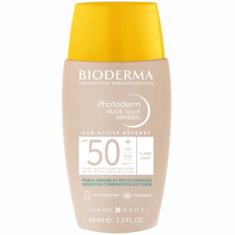 La fórmula de Bioderma Photoderm Nude Touch SPF50+ en Tono Claro contiene filtros solares UVA/UVB de amplio espectro para una protección solar completa, así como agentes matificantes para un acabado sin brillos.