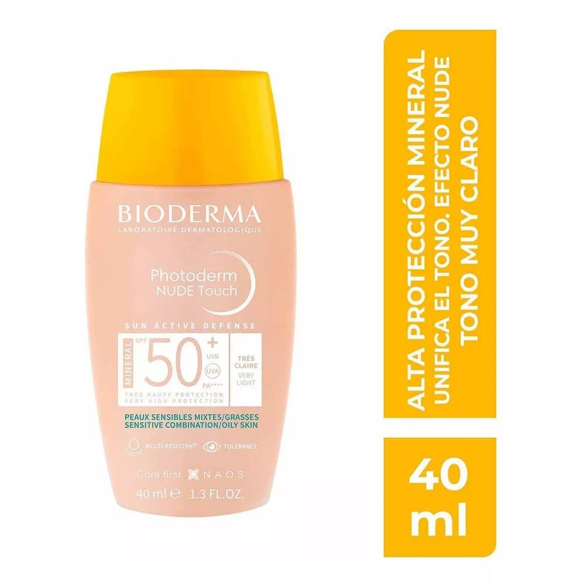 BIODERMA Protector Solar con Color Photoderm Nude Touch FPS 50, Tono Muy Claro, 40ml.
