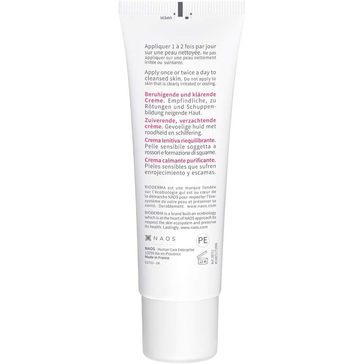 Calma la Irritación y el Enrojecimiento: Los agentes calmantes y emolientes (enoxolona y aceite de coco) de Sensibio DS+ Crème alivian la piel irritada, minimizan el enrojecimiento y reducen visiblemente la formación de descamación.