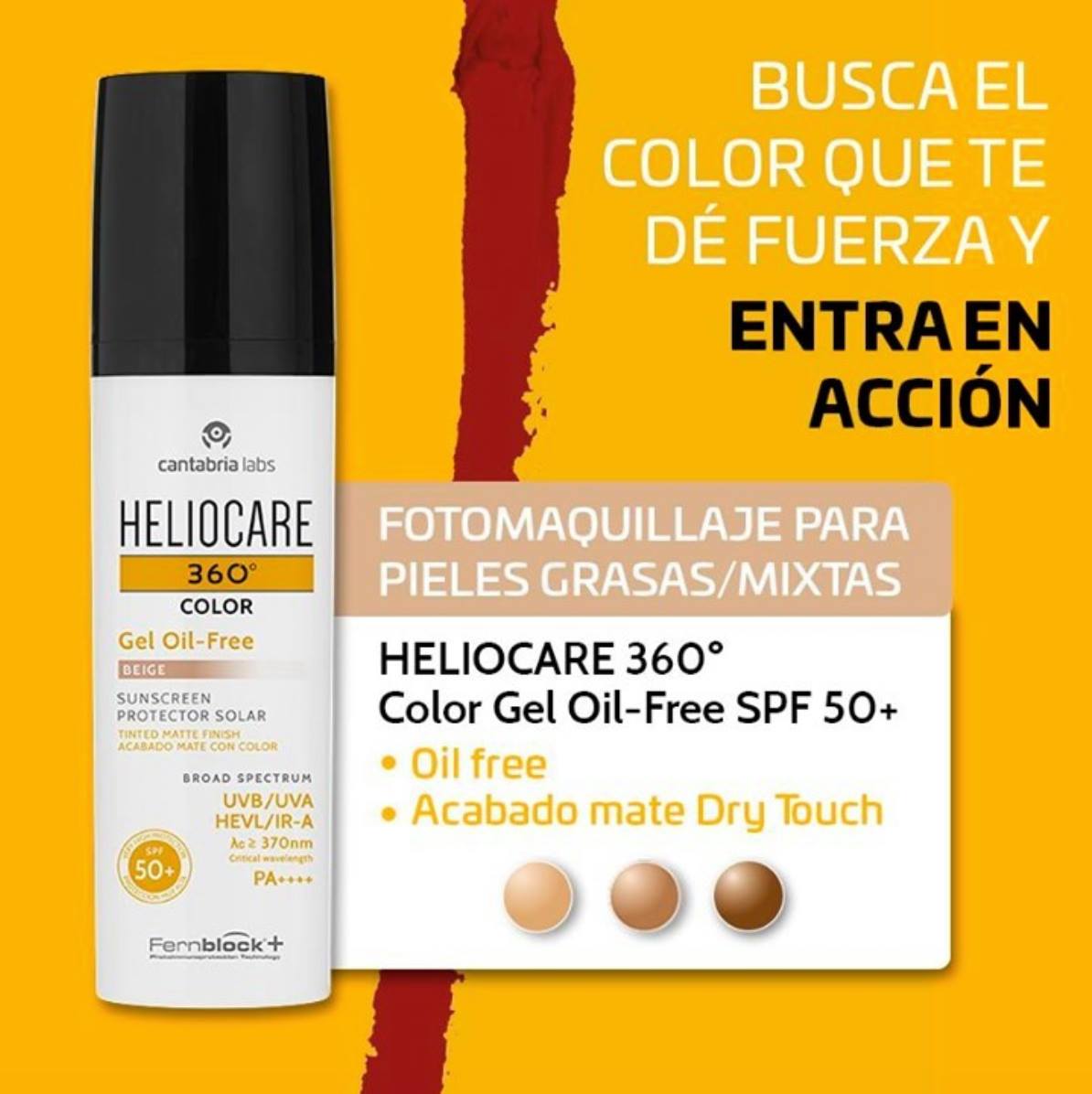 Descubre la protección solar definitiva con Cantabria Labs Heliocare 360º Color Gel Oil-Free Beige, SPF 50+, 50ml. ¡El aliado perfecto para una piel radiante y protegida todos los días! Sumérgete en una experiencia única que combina la máxima protección solar con los beneficios de un maquillaje ligero y natural.