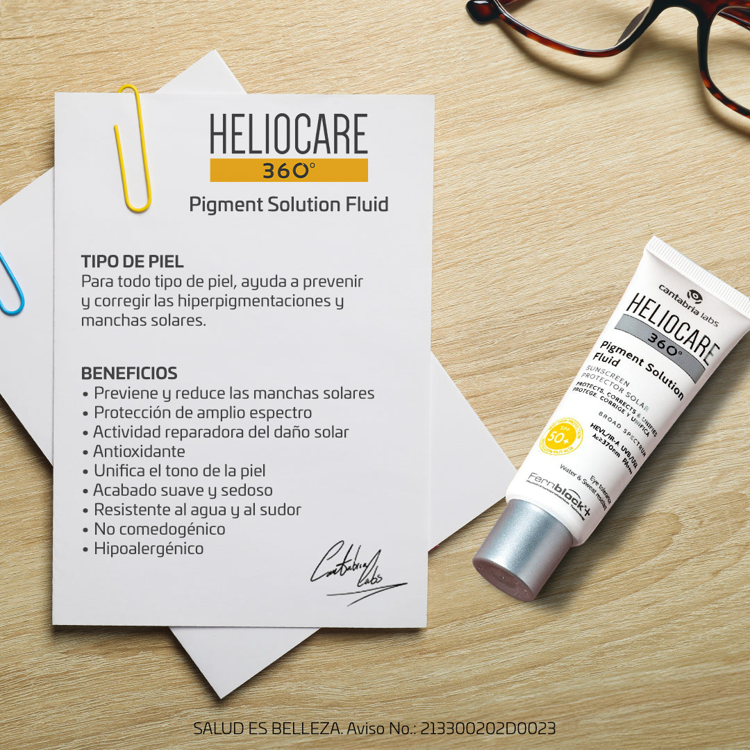 Disfruta de una piel protegida, luminosa y sin manchas con Cantabria Labs Heliocare 360º Pigment Solution Fluid SPF 50+. ¡Recupera tu confianza y brilla con seguridad bajo el sol!