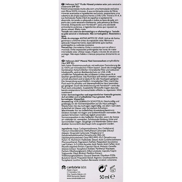 CANTABRIA LABS HELIOCARE 360º Protector Solar Mineral Fluid, SPF 50+