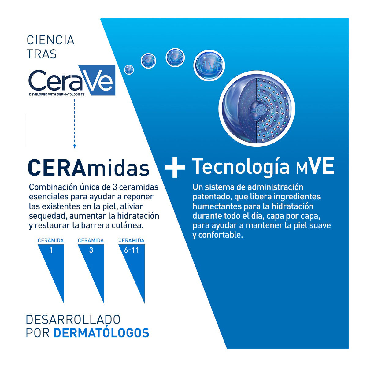Desarrollada con dermatólogos, esta crema cuenta con la Tecnología patentada MVE que mantiene la piel hidratada durante 24 horas. La Crema hidratante CeraVe incluye 3 ceramidas esenciales y Ácido Hialurónico para hidratar eficazmente la piel y restaurar la barrera protectora.