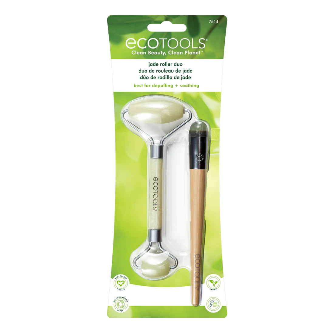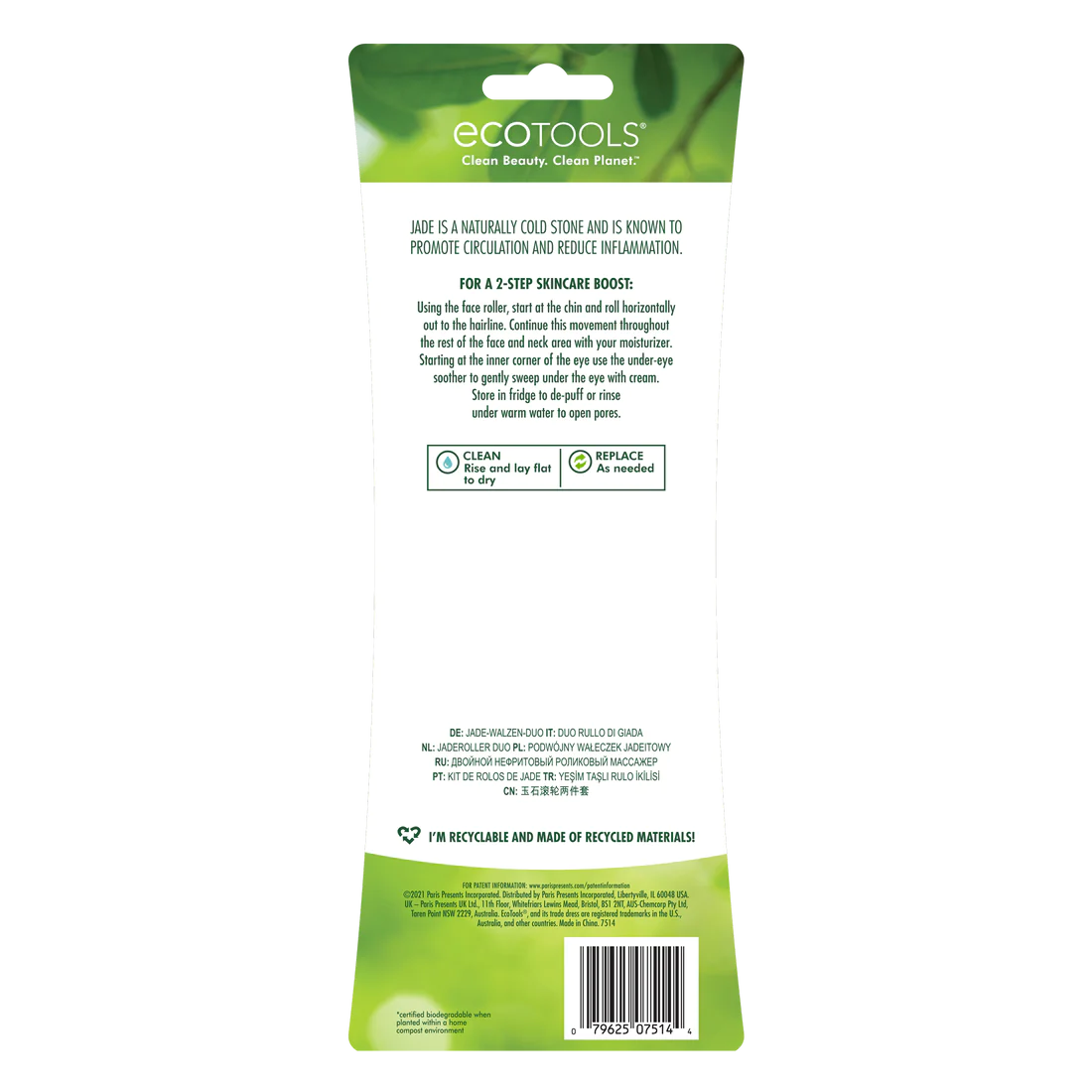ECOTOOLS Jade Facial Roller and Eye Roller Duo, Dúo de rodillo facial y rodillo para ojos de jade.