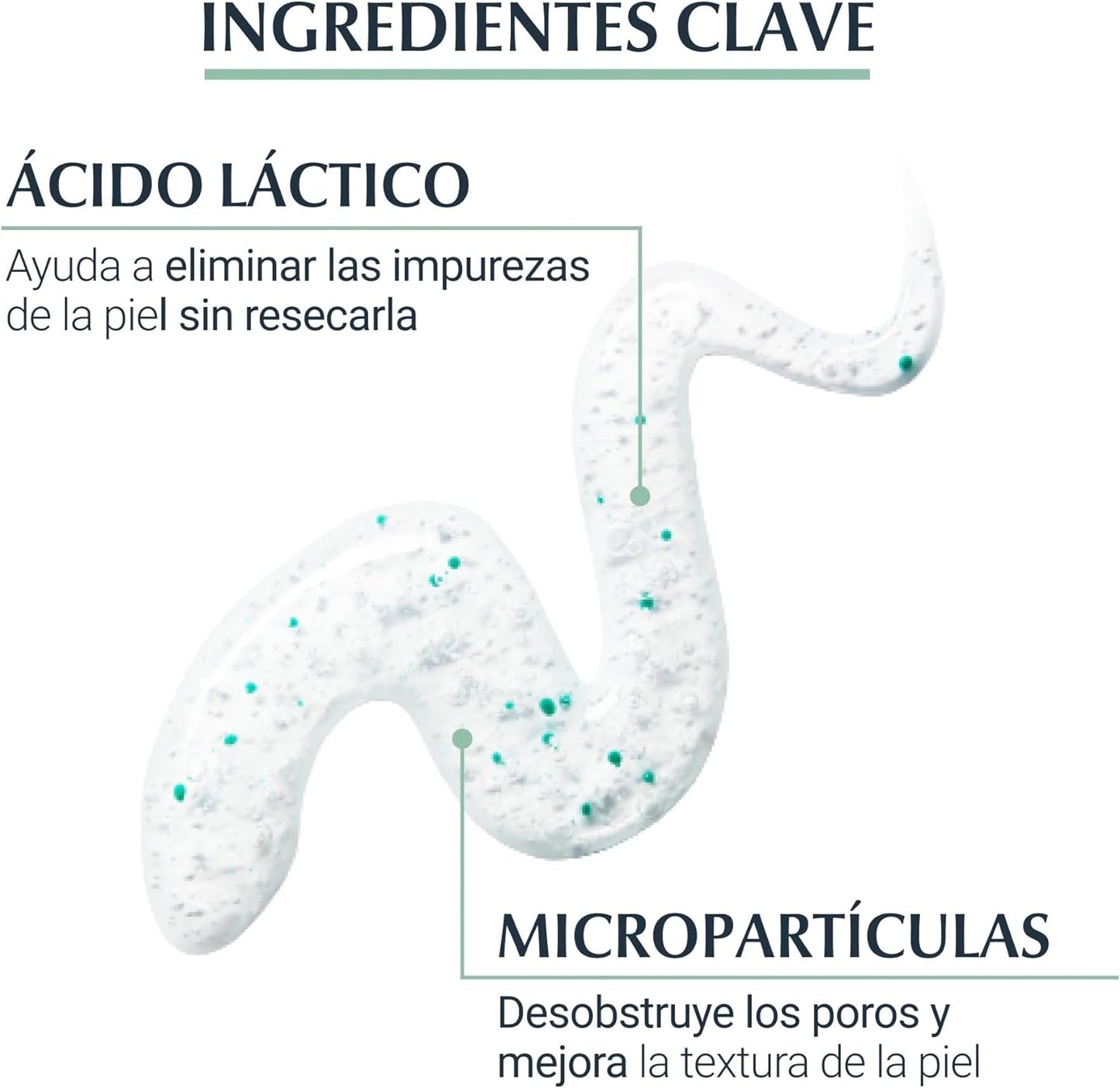 Su fórmula con ácido láctico y micropartículas de celulosa, desobstruye los poros, ayuda a reducir los puntos negros e impurezas y refina la textura de la piel. No es comedogénico y tiene acción comedolítica.
