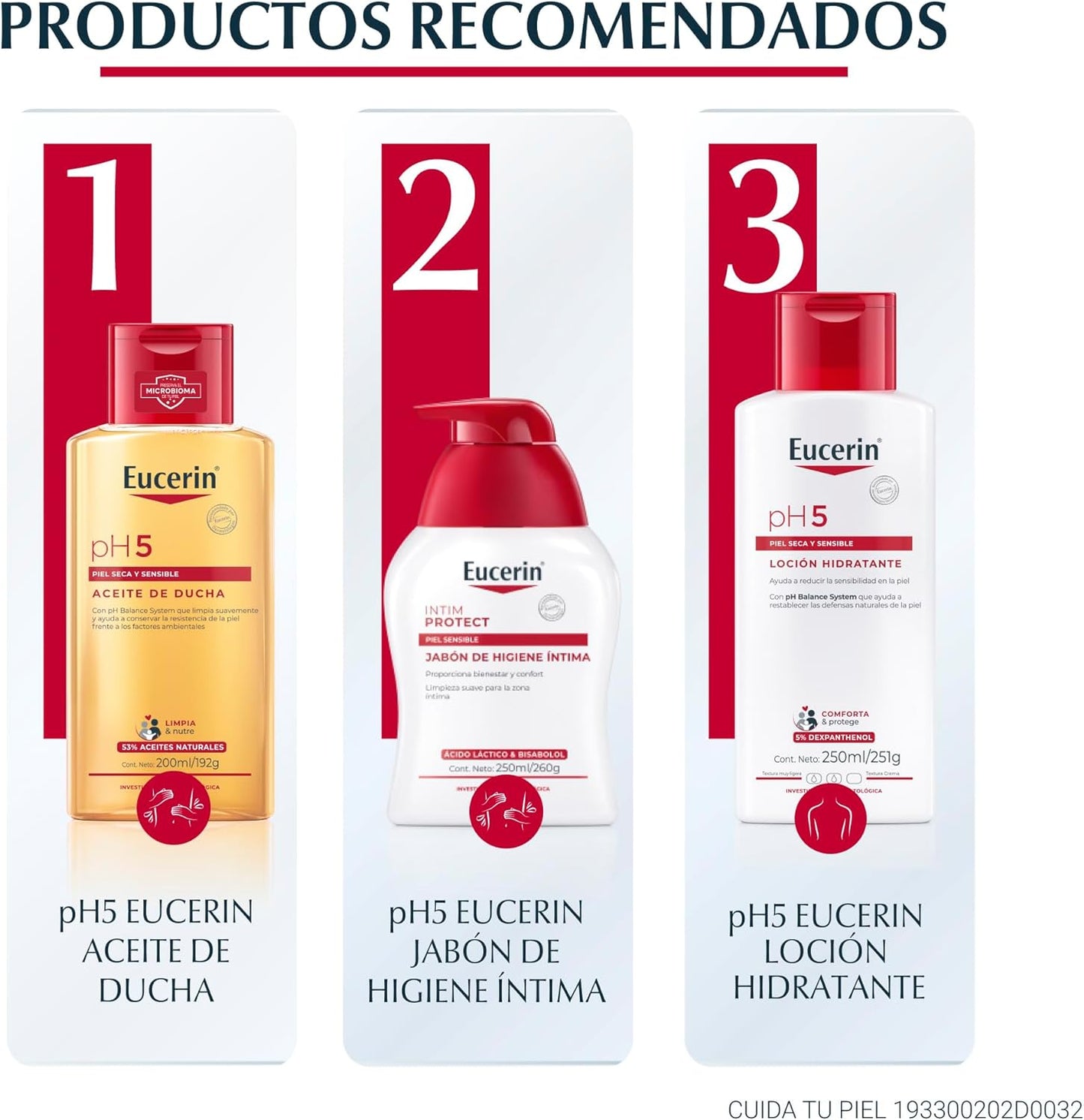 - Para obtener mejores resultados, utilizar en combinación con un limpiador corporal de la línea Eucerin pH5.