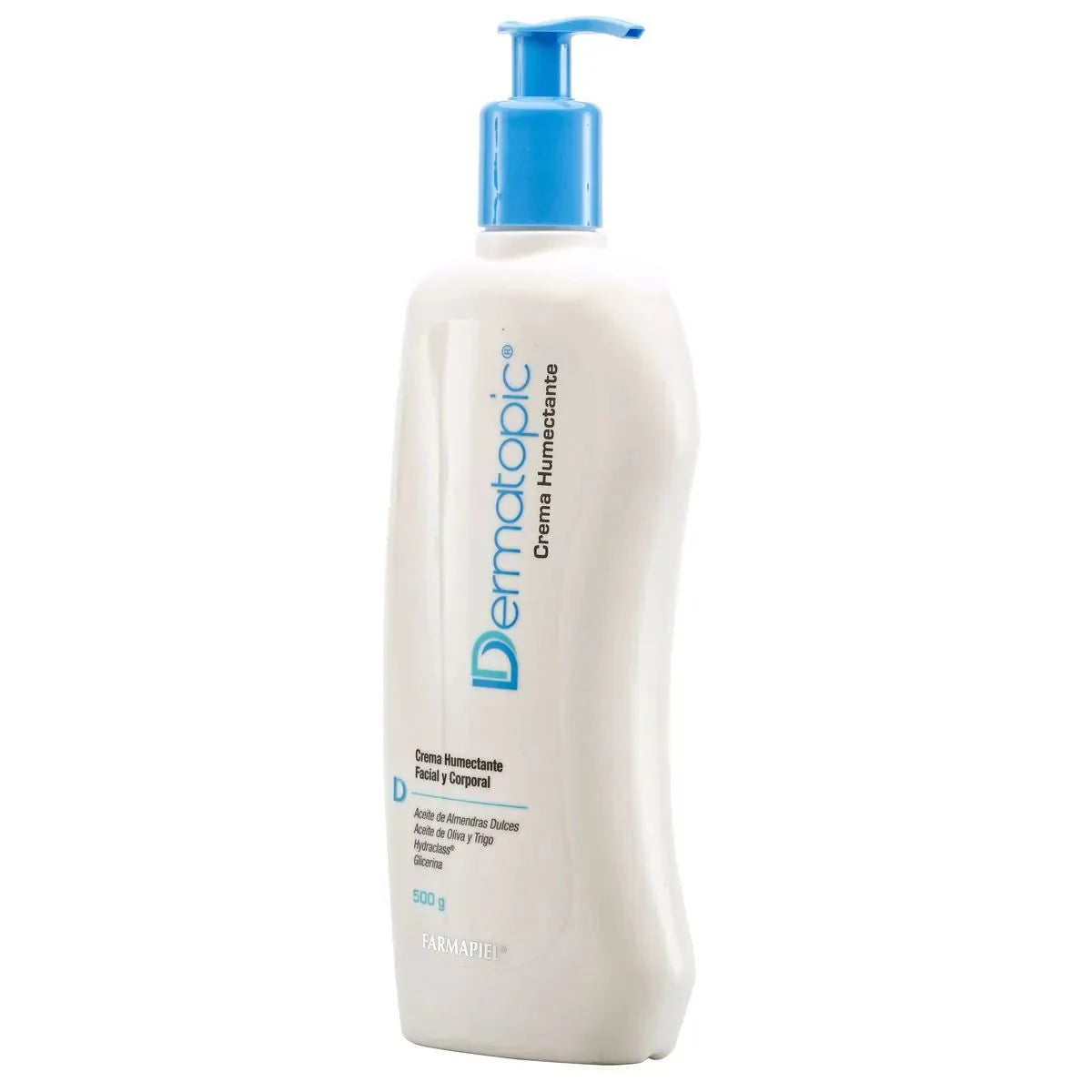 Dermatopic Crema Humectante de 500gr, ideal para cara y cuerpo, proporciona hidratación profunda, especialmente en zonas secas, con ingredientes naturales como almendras dulces.