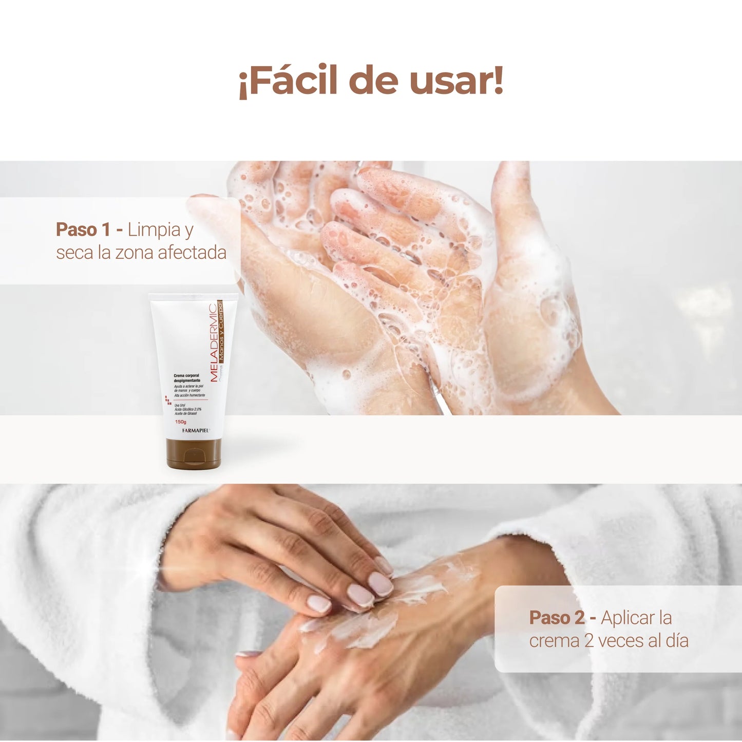 ¡No esperes más para revelar tu luminosidad interior con FARMAPIEL Meladermic Manos y Cuerpo Crema Despigmentante! Deja que tu piel brille con confianza y belleza.