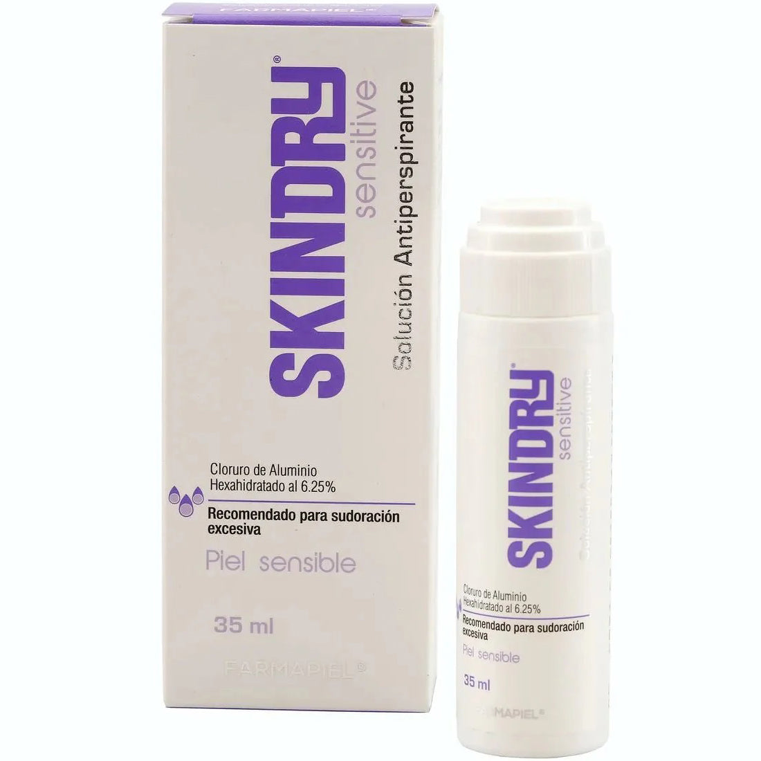 FARMAPIEL Skindry Sensitive Antiperspirante 48h, Eficaz para la Sudoración Excesiva, 35ml. Cloruro de Aluminio al 6.25%