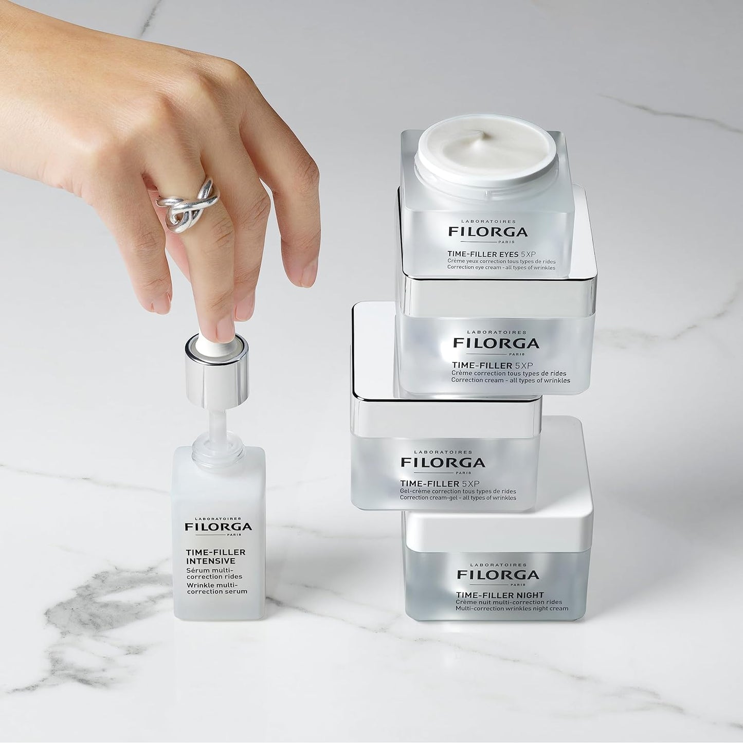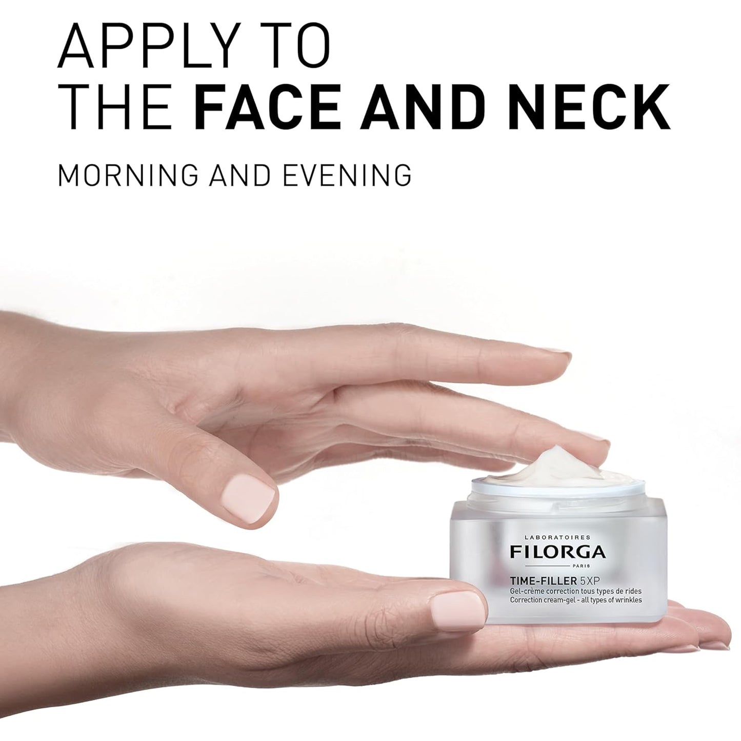 Disponible en 2 texturas, en crema [piel normal a seca] o gel-crema [piel mixta a grasa], TIME-FILLER 5XP se inspira en 5 técnicas de medicina estética para alisar los 5 tipos de arrugas: contraccion, superficiales, profundas, deshidratación y del cuello.