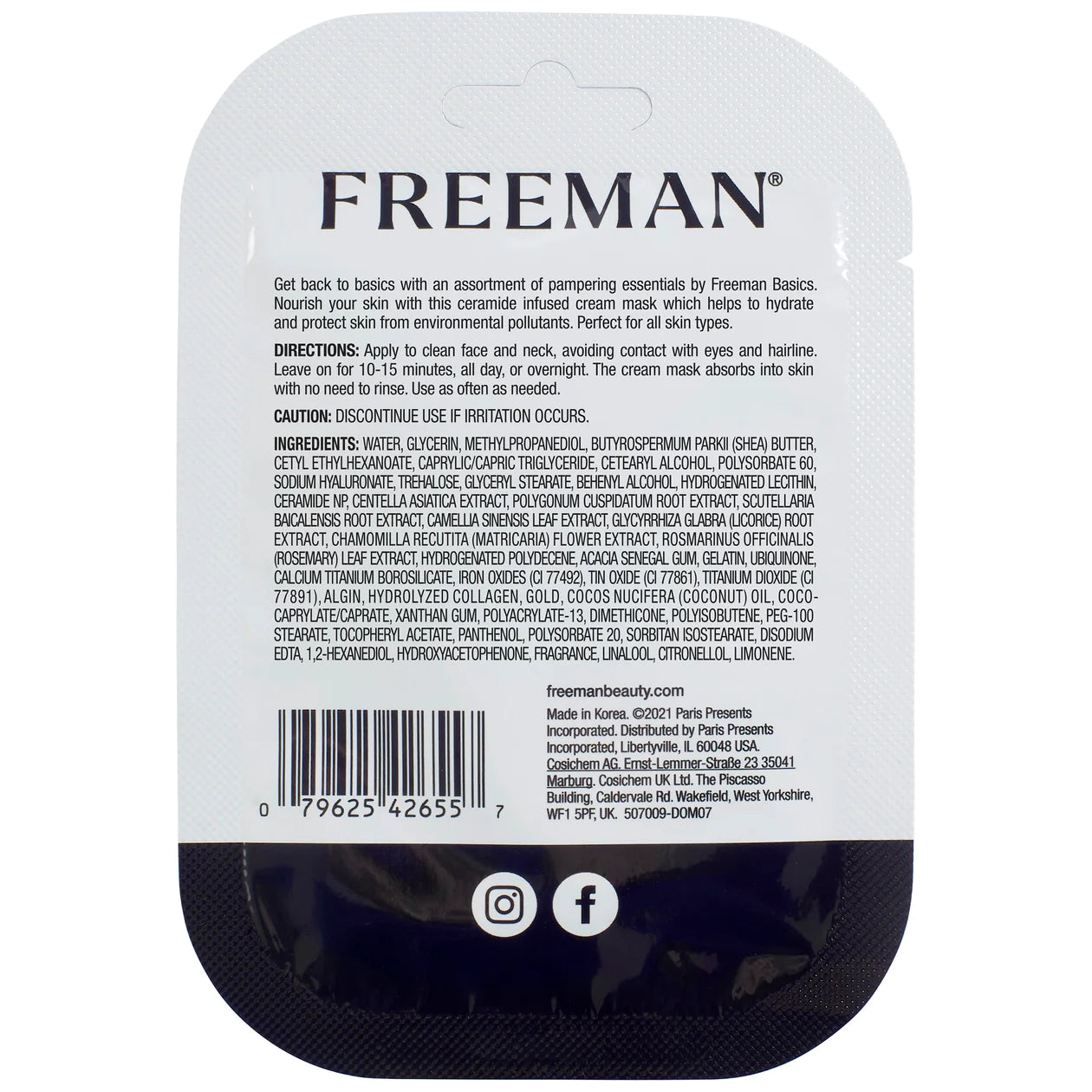 • Nuestra mascarilla protectora Freeman Basics está impregnada de ceramidas.
