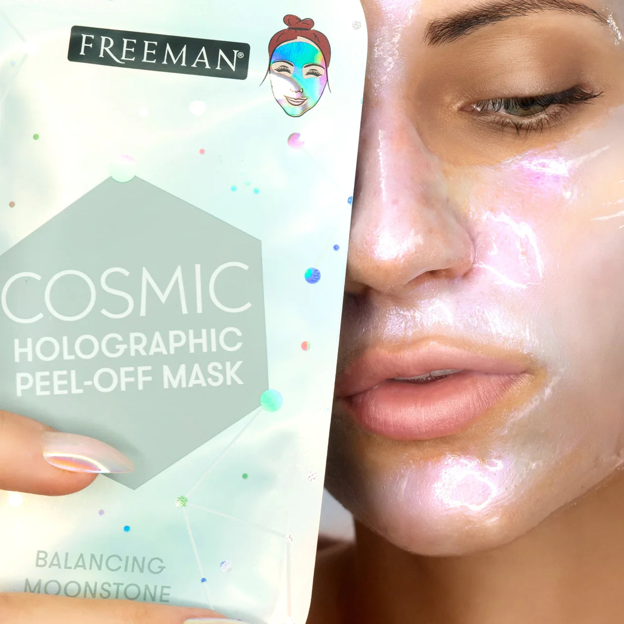 • Parte de la colección de mascarillas faciales holográficas Freeman Cosmic