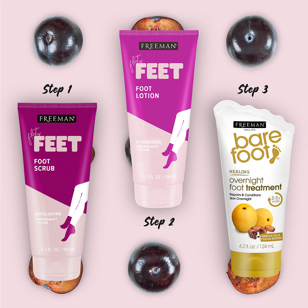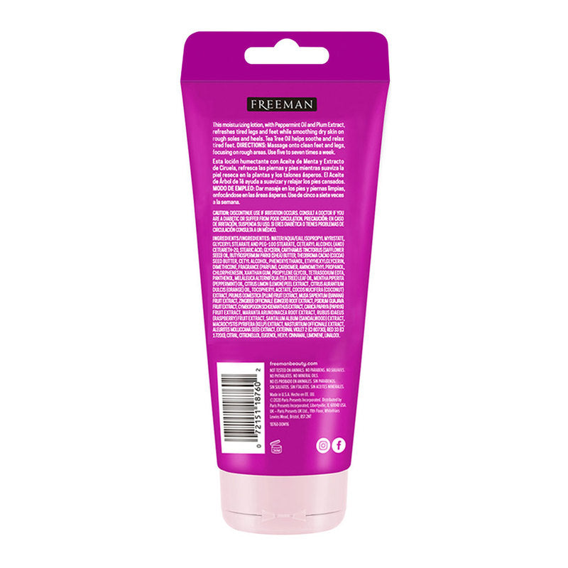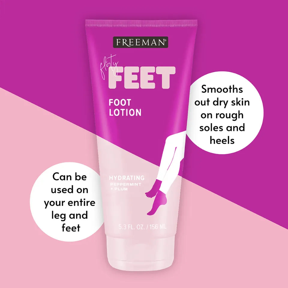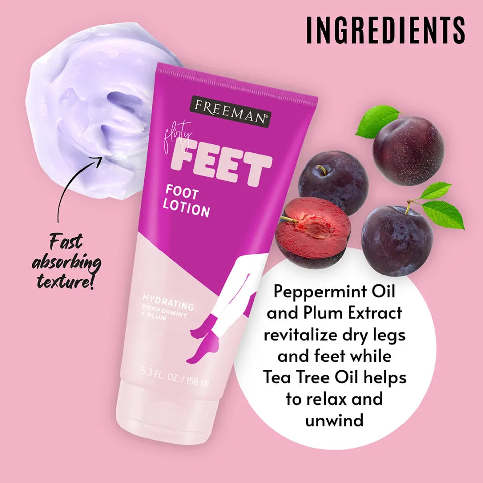 FREEMAN Flirty Feet Hydrating Foot Lotion, Peppermint & Plum 156ml, Loción Hidratante para Pies, Menta y Ciruela, 156ml.