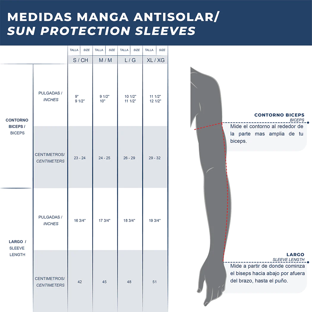 Protégete del sol y del clima, cubre todo el brazo. Disponible en color arena, blanco, gris y negro liso con logo estampado.