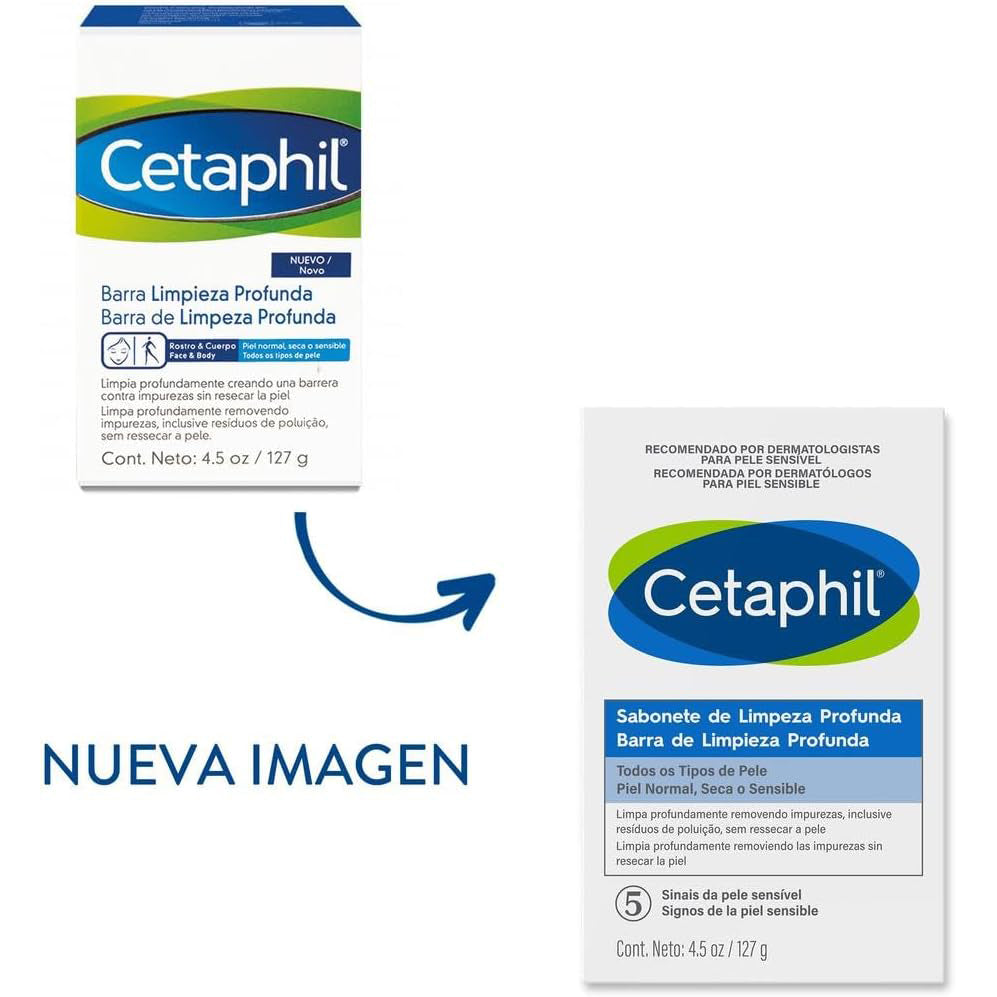 GALDERMA Cetaphil Barra de Limpieza Profunda, Facial y Corporal, 127gr.