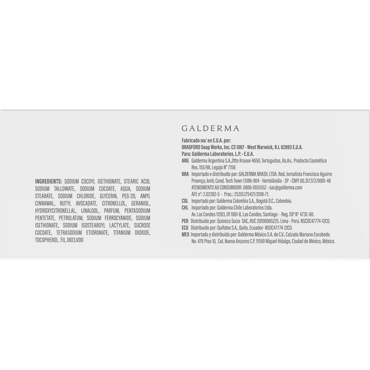 Cocoil Isetionato de Sodio, Butil Avocadato, Glicerina, Tocoferol, Ácido Esteárico, Agua, Amilcinamal, Citronelol, Cloruro sódico, Cocoato de sacarosa, Cocoato sódico, Dióxido de titanio, Estearato de sodio, Etidronato de tetrasodio, Ferrocianuro de sodio, Geraniol, Hidroxicitronelal, Isetionato de sodio, Lactilato Isostearílico sódico, Lilalol, PEG 20, Pentetato de Pentasodio, Petrolato, Sebato de sodio.