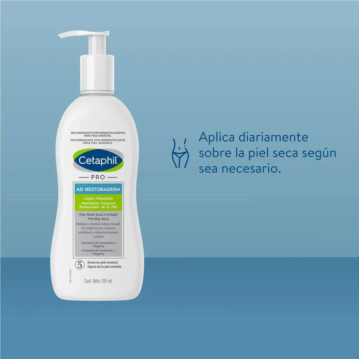 GALDERMA Cetaphil PRO AD Restoraderm Loción Hidratante Corporal, Alivia la Picazón, 295ml.