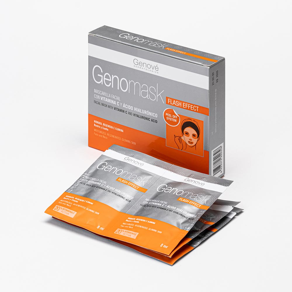 Genomask es una mascarilla facial en formato peel off con Vitamina C y Ácido Hialurónico. El estrés, una dieta poco equilibrada, la contaminación ambiental o la escasez de horas de sueño, afectan al tono y la luminosidad de la piel que pierde vitalidad y elasticidad. En estos casos la piel requiere una dosis extra de hidratación, luminosidad y regeneración, para devolverle un aspecto joven y uniforme incluso a los rostros más desvitalizados. Genomask con Vitamina C y Ácido hialurónico, estimula la síntesis de colágeno y elastina, y promueve la recuperación del tono, firmeza y resplandor.