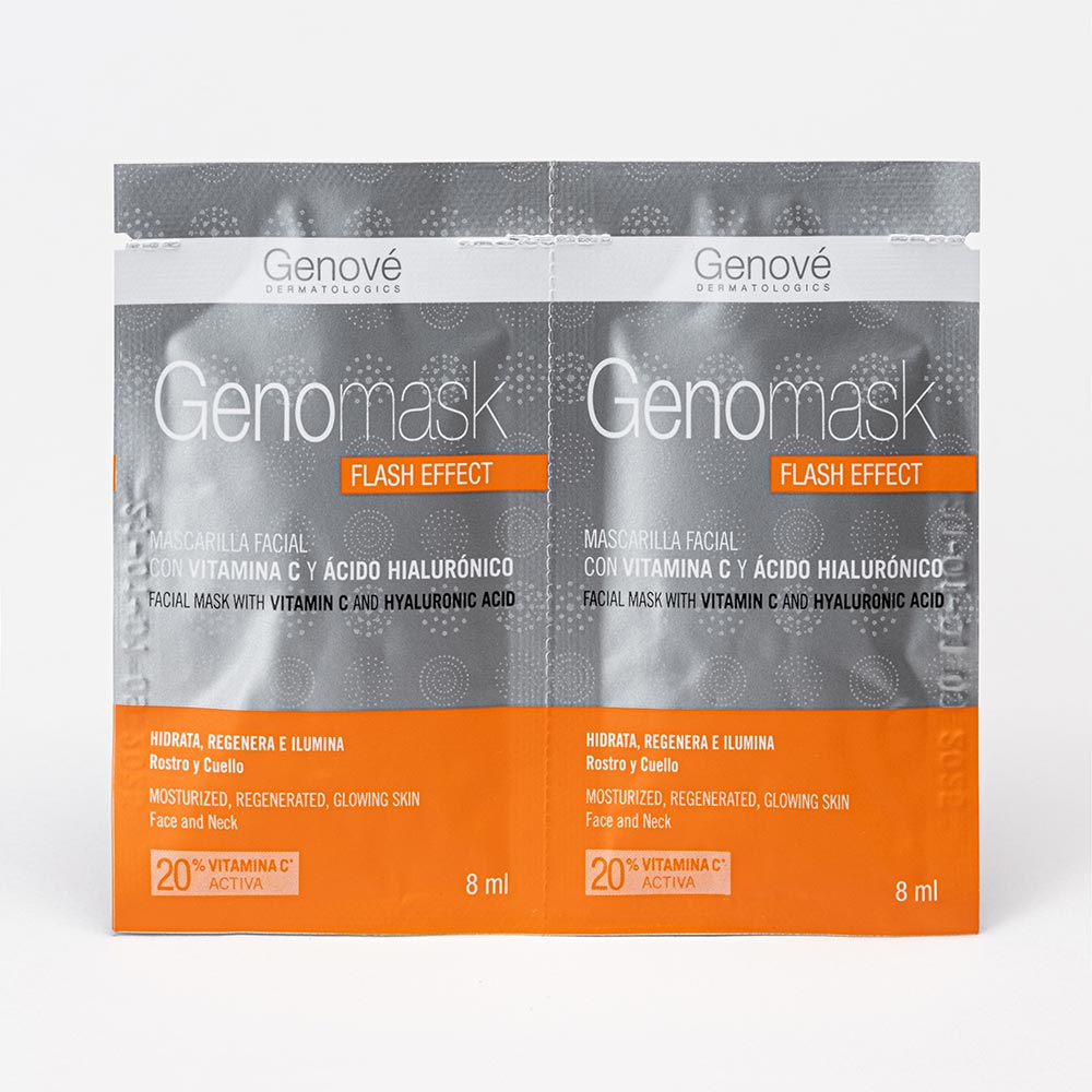 GENOVÉ Genomask Mascarilla Facial con Vitamina C y Ácido Hialurónico, 1 Paquete con 6 Sobres de 8ml c/u.